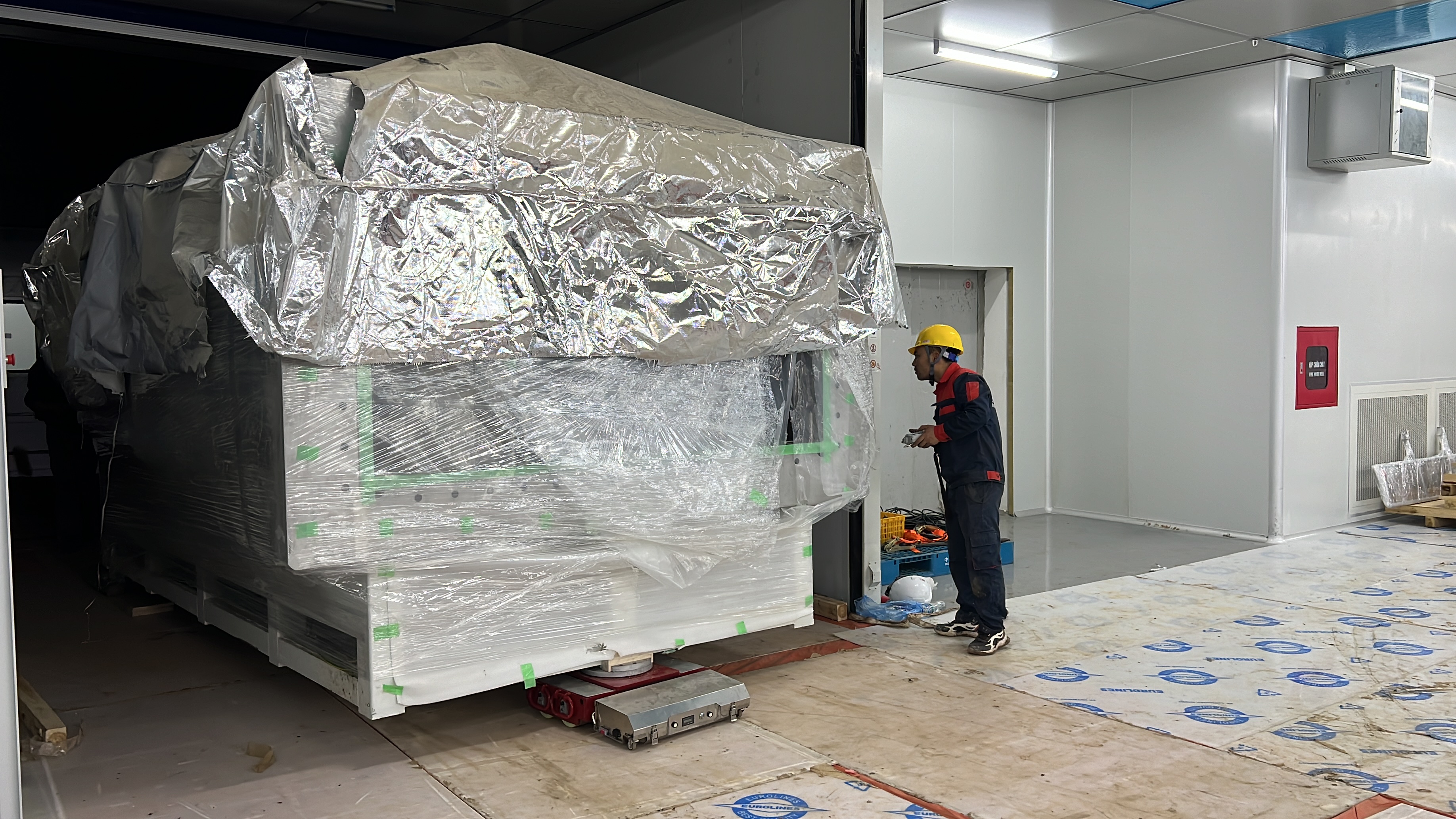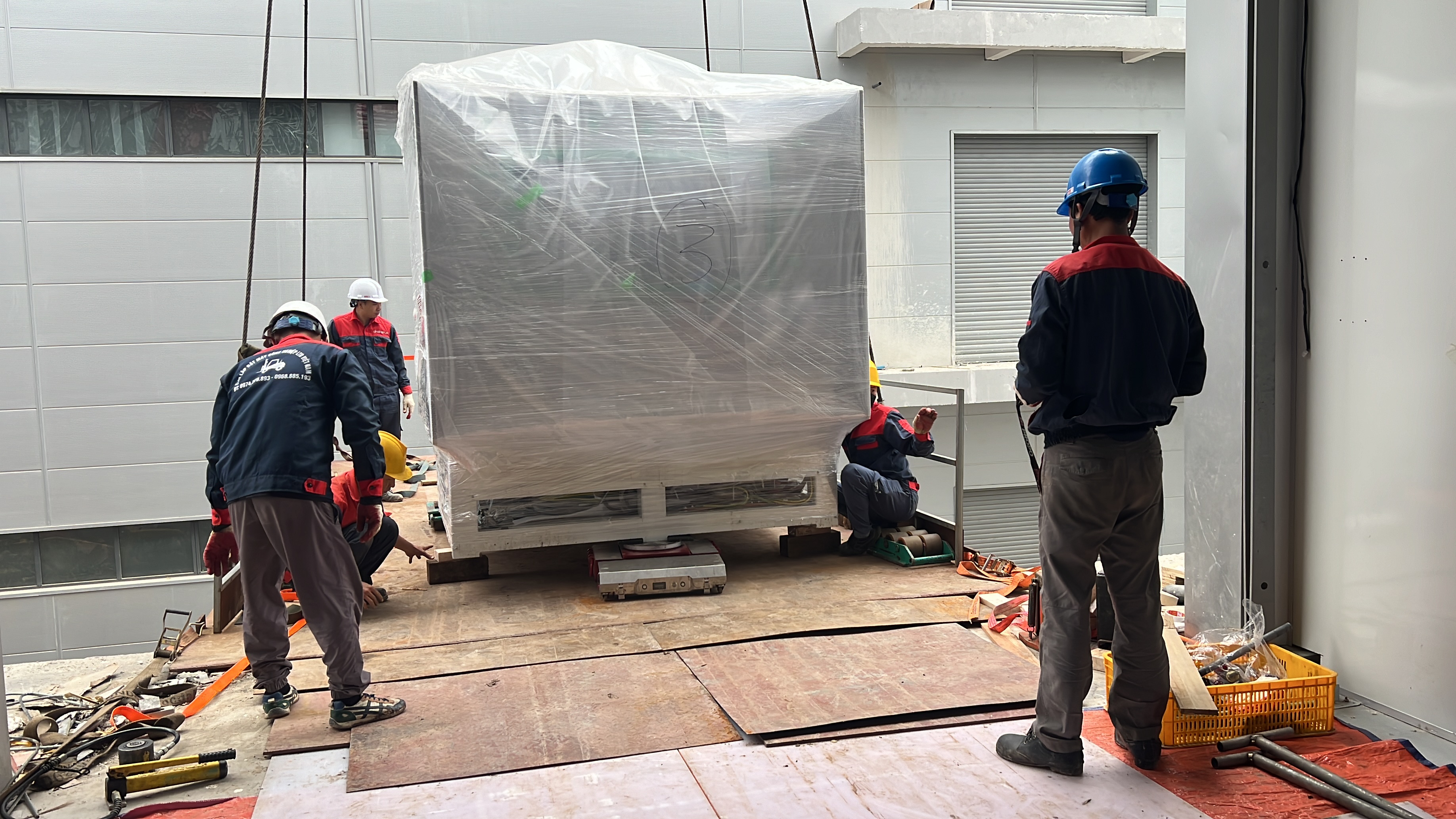 Ngày 18/12/2024 cung cấp dịch vụ di chuyển máy móc từ xe vận chuyển vào và lắp đặt trong nhà máy.