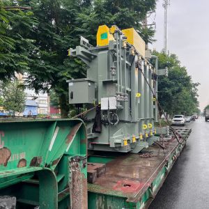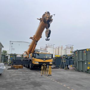 Xe cẩu 300 tấn được sử dụng để nâng hạ máy biến áp từ trên xe vận chuyển xuống dưới. Sau đó thi công nâng hạ và lắp đặt máy biến áp vào trạm của nhà máy.