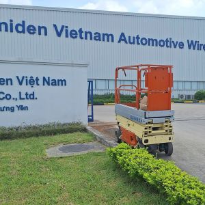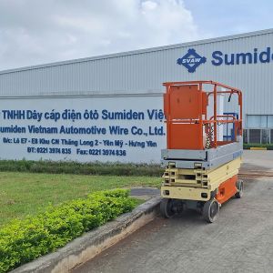 MC Industries cho thuê xe nâng người 8m cắt kéo cho công ty TNHH Dây cáp điện ô tô Sumiden Việt Nam tại KCN Thăng Long 2, Hưng Yên