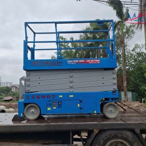 Sau khi nhận được thông tin phản hồi từ khách hàng đơn vị chúng tôi đã tư vấn khách hàng lựa chọn dòng xe nâng người 12m thân hẹp. Dòng xe này là dòng xe cắt kéo đặc biệt có thân hẹp để làm việc ở những vị trí có chiều rộng hẹp. Chiều rộng của xe là 0.81m giúp xe di chuyển dễ dàng ở giữa những kệ hàng.