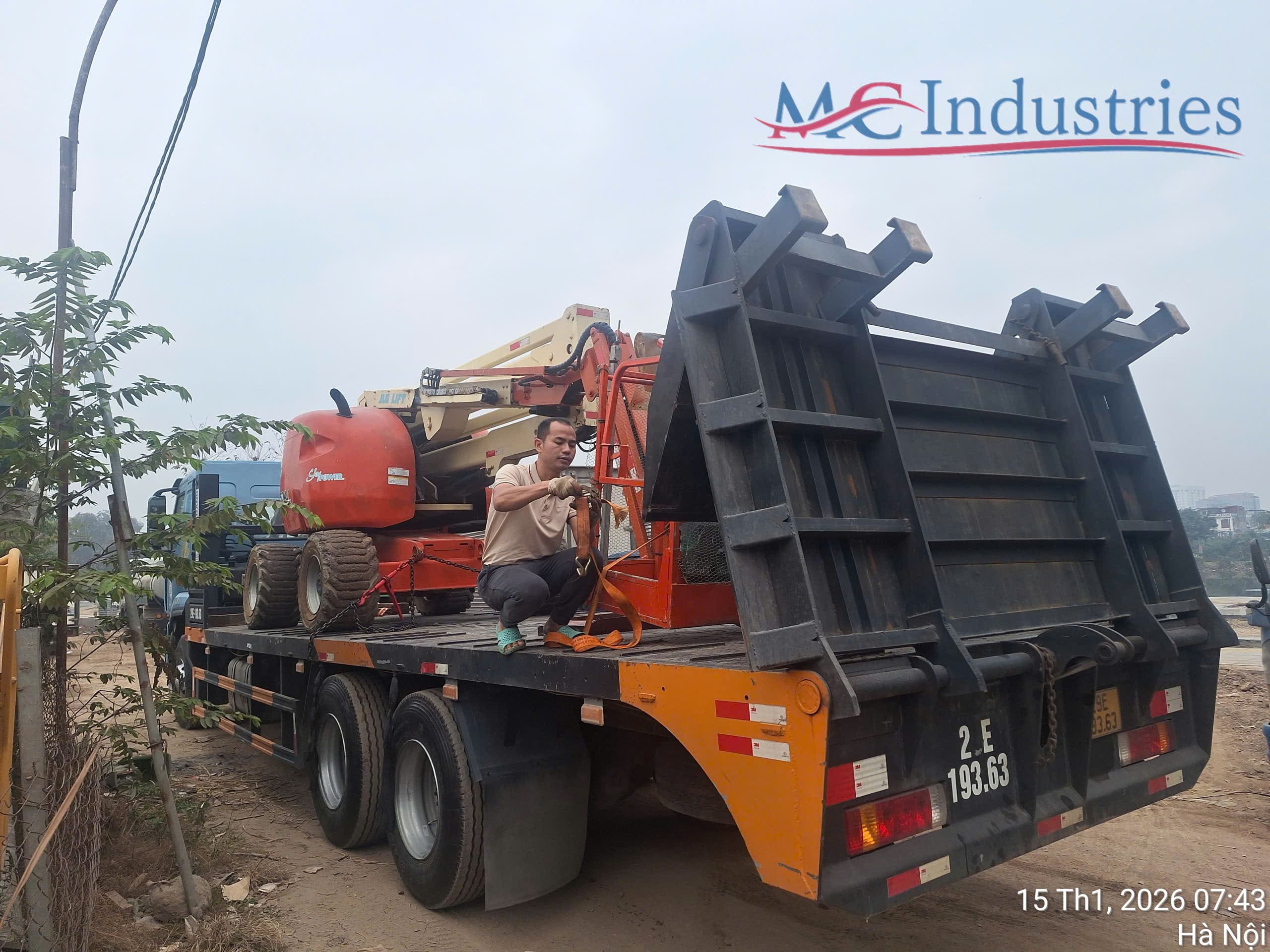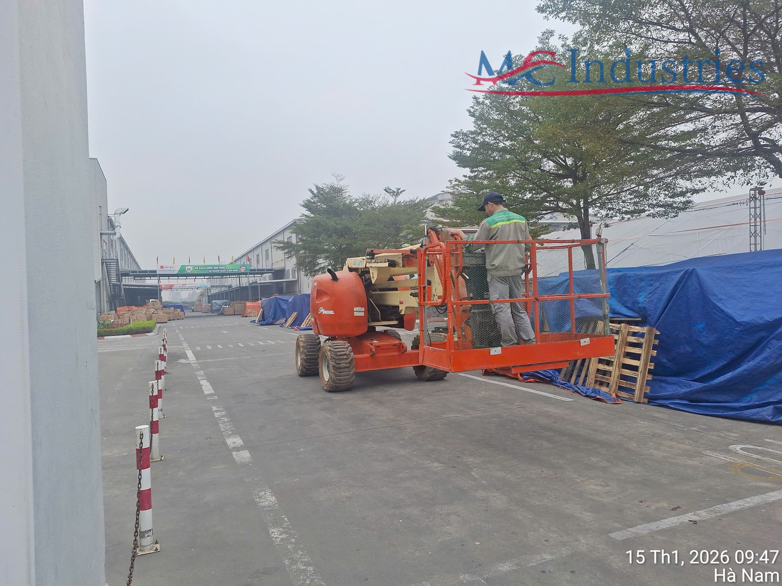 Ngày 15/1/2026 MC Industries bàn giao xe nâng người boom lift 16m dạng gấp khúc để thực hiện công việc lắp đặt ống gió tại nhà máy Elmich Việt Nam tại Ninh Bình.