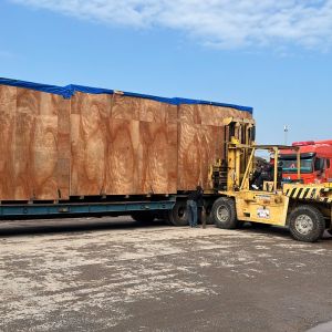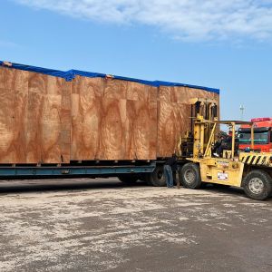 Trong dự án lần này đơn vị sử dụng xe nâng hàng 15 tấn, 2 xe nâng hàng 5 tấn phục vụ quá trình lôi hàng từ container vào trong nhà máy. Với những kiện hàng nhỏ sử dụng xe nâng hàng 5 tấn, với những kiện hàng lớn cần sử dụng xe nâng hàng 15 tấn.
