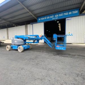 Với chiều cao nhà máy cao nên sử dụng xe nâng người 16m dạng boom gấp khúc. Vì nhà máy nhiều khu vực không thể tiếp cận trực tiếp được, nên cần xe nâng người có tầm với ngang. Xe nâng người boom lift 16m có tầm với ngang gần 8m nên tiếp cận không gian làm việc rất tốt.