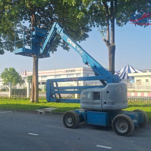 Vì làm việc trong nhà xưởng có nhiều vật cản nên đơn vị tư vấn khách hàng lựa chọn sử dụng xe nâng người dạng cần gấp khúc. Dòng thiết bị này đáp ứng làm việc tốt khi ở không gian chật hẹp, tầm với ngang tốt.