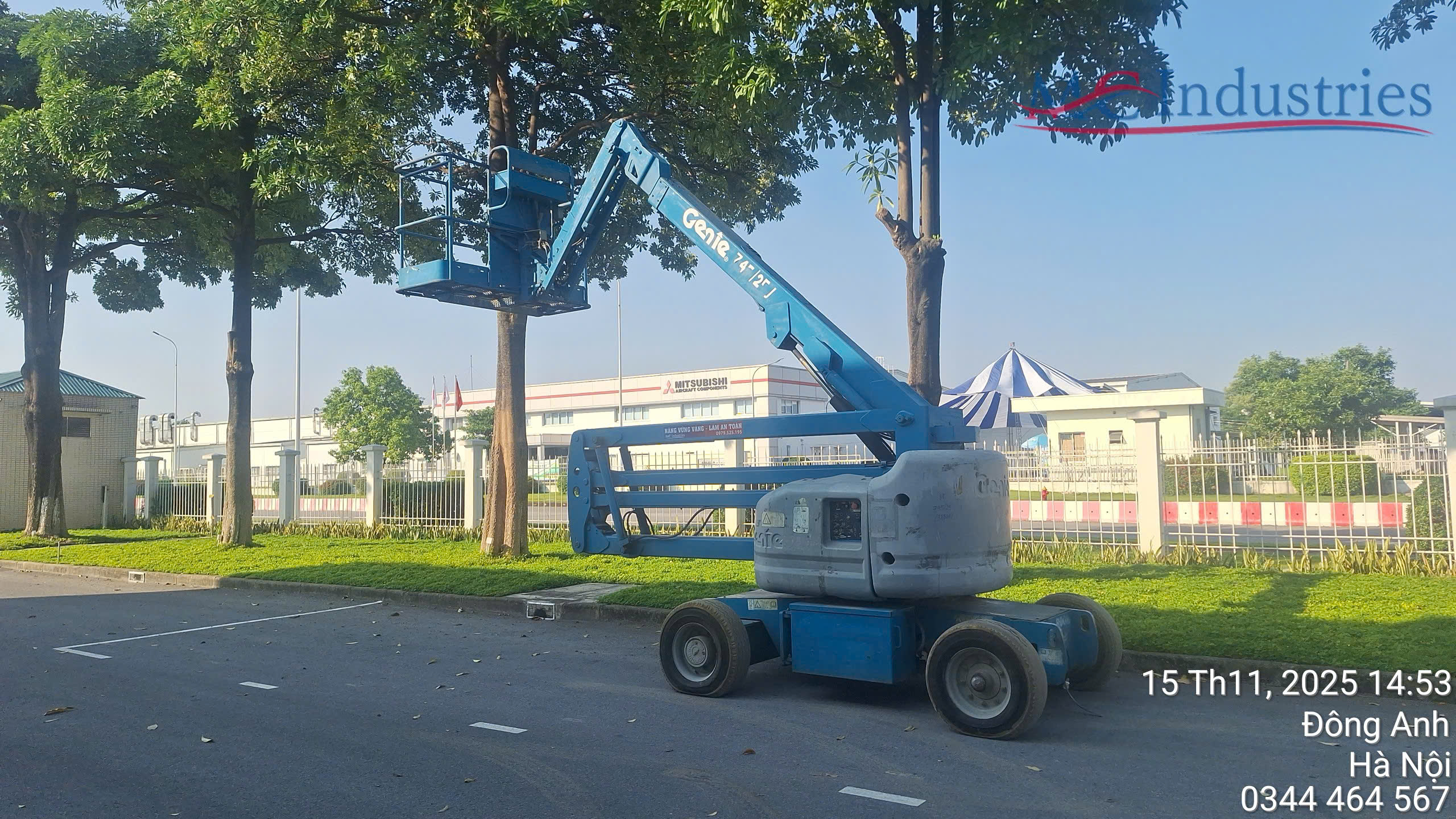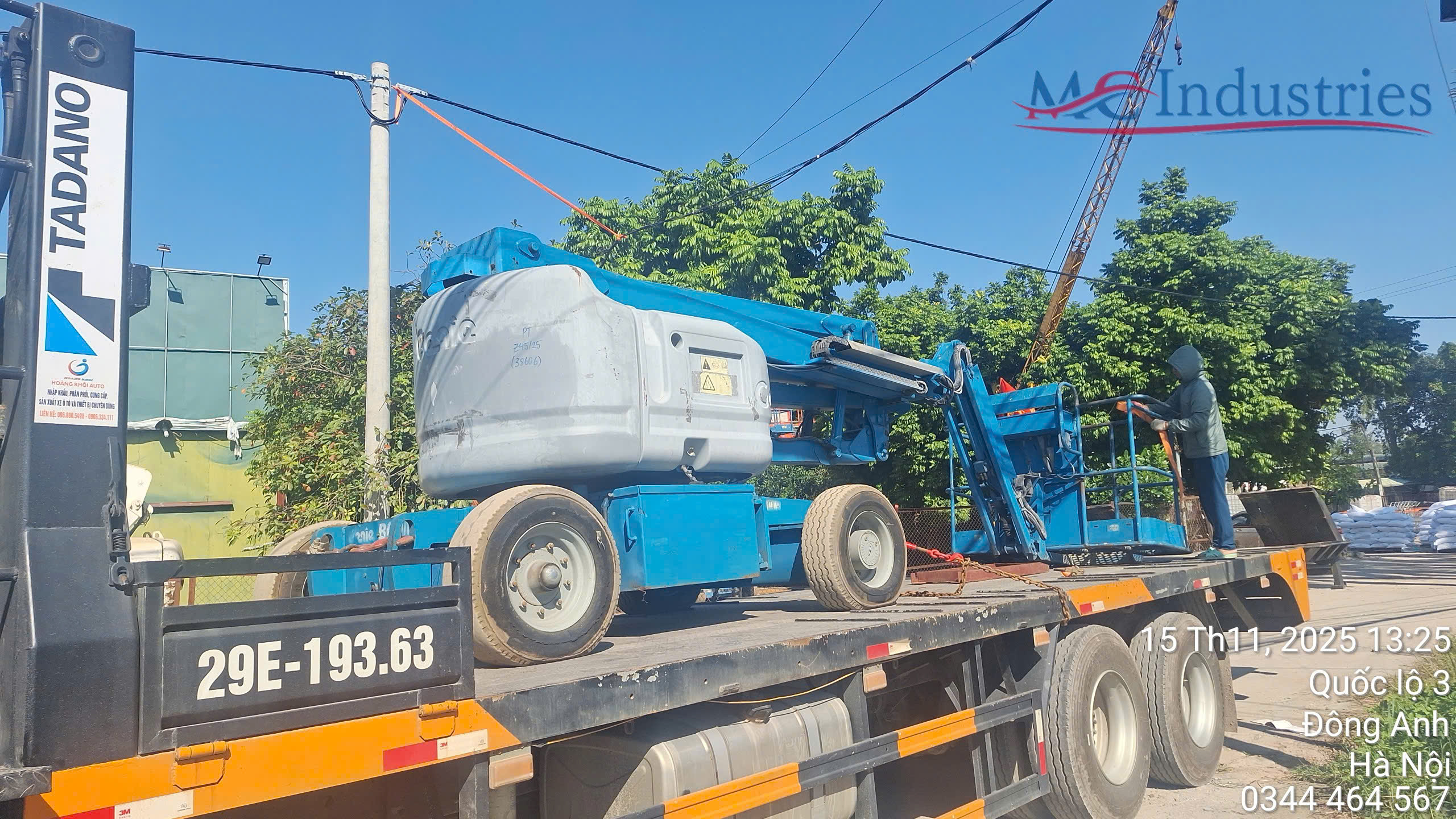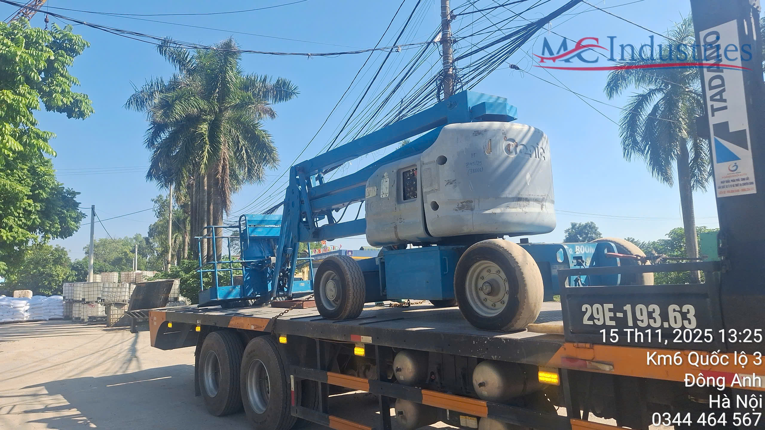 Ngày 15/11/2025 MC Industries cung cấp xe nâng người boom lift 16m phục vụ bảo trì hệ thống cơ điện của nhà máy.