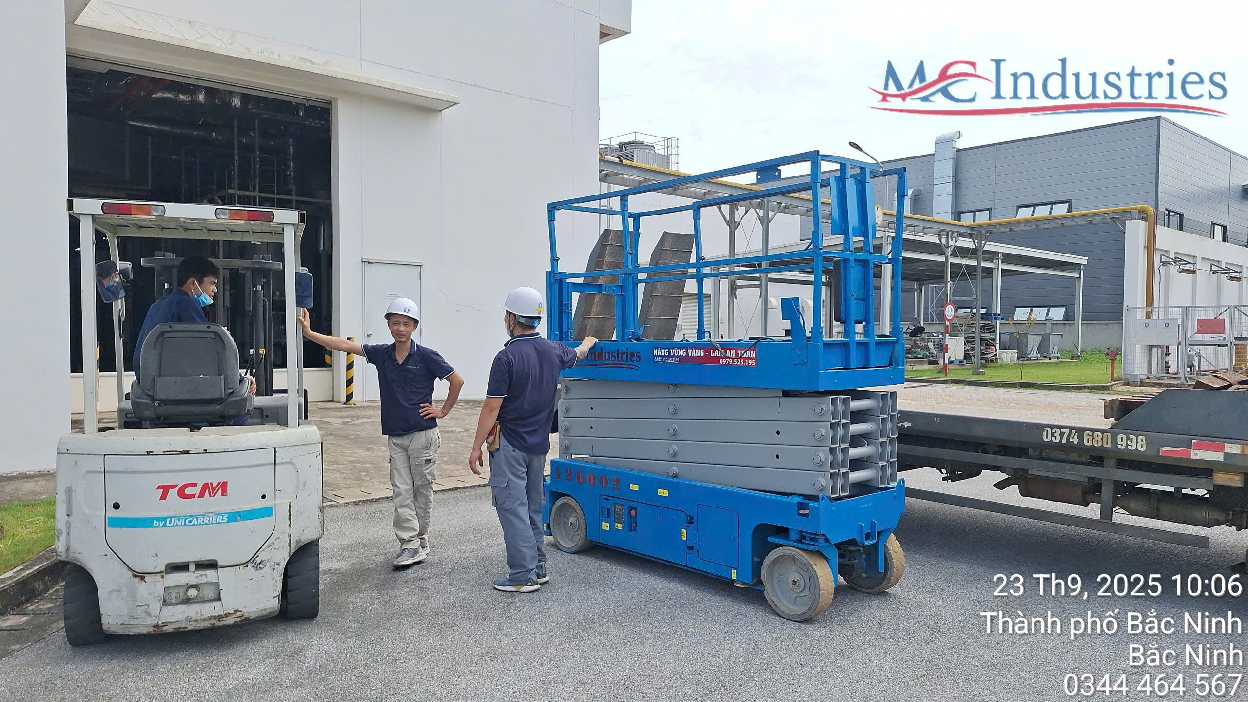 Ngày 23/9/2025 MC Industries bàn giao xe nâng người 12m cắt kéo phục vụ nhà máy Hanam Electricity Vina để thay thế toàn bộ bóng đèn trong nhà máy.