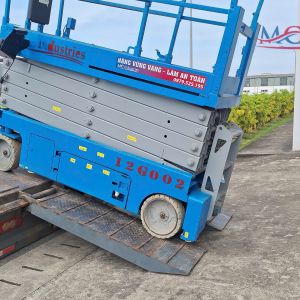 Với công việc thay thế bóng đèn trong nhà máy nên chúng tôi lựa chọn dòng xe nâng người chạy điện. Dòng xe nâng người genie GS3232 là dòng xe nâng người thân hẹp giúp xe di chuyển dễ dàng trong lối di chuyển nhỏ hẹp của nhà máy. Với chiều cao làm việc 12m giúp khách hàng tiếp cận vị trí nhanh chóng.