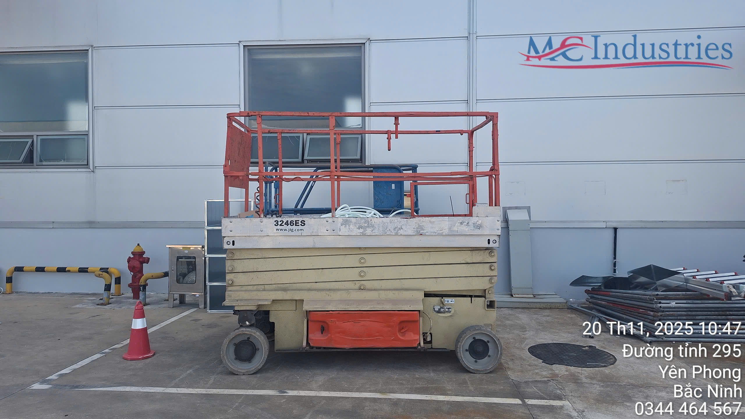 Ngày 20/11/2025 MC Industries cung cấp xe nâng người 12m cắt kéo điện phục vụ bảo trì, bảo dưỡng hệ thống cáp điện cho nhà máy Hyosung tại Bắc Ninh.