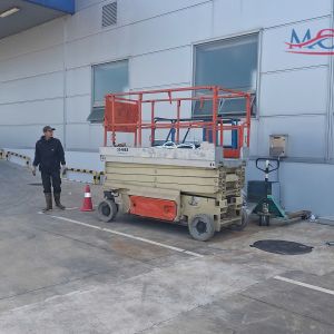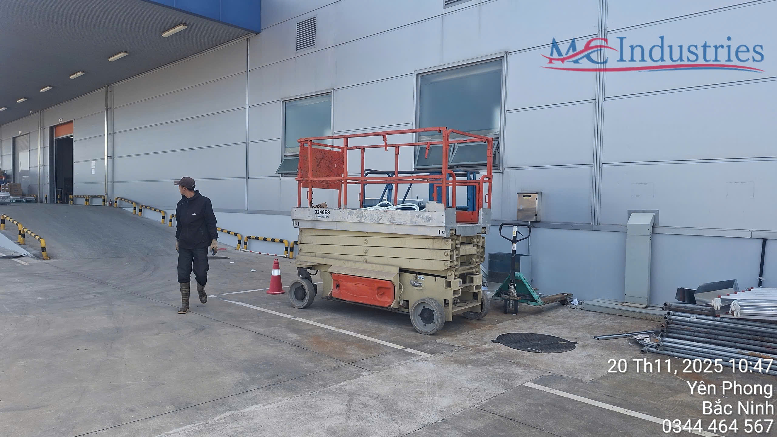 MC Industries cung cấp xe nâng người 12m cắt kéo điện phục vụ nhà máy Hyosung Financial System tại Bắc Ninh
