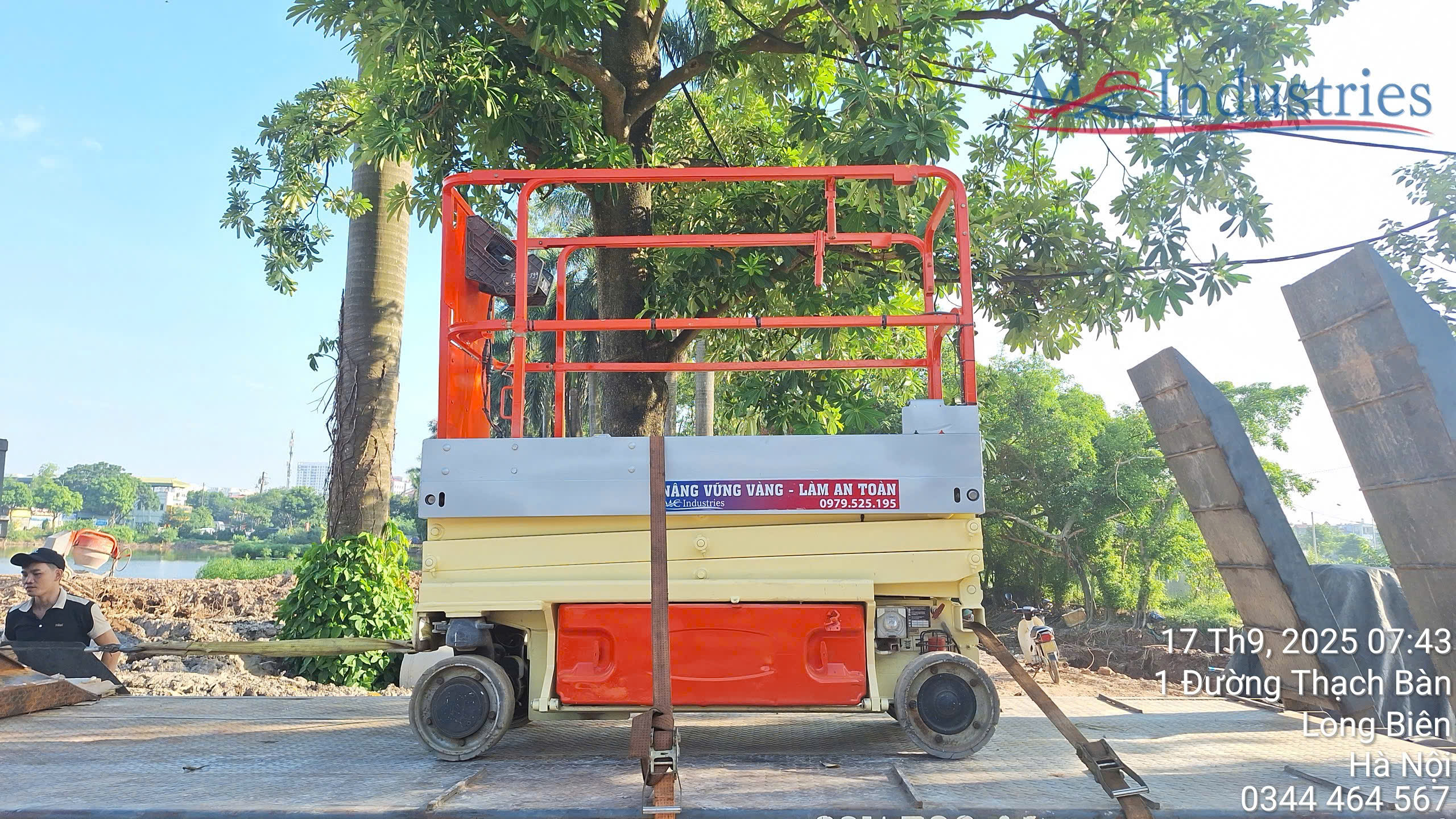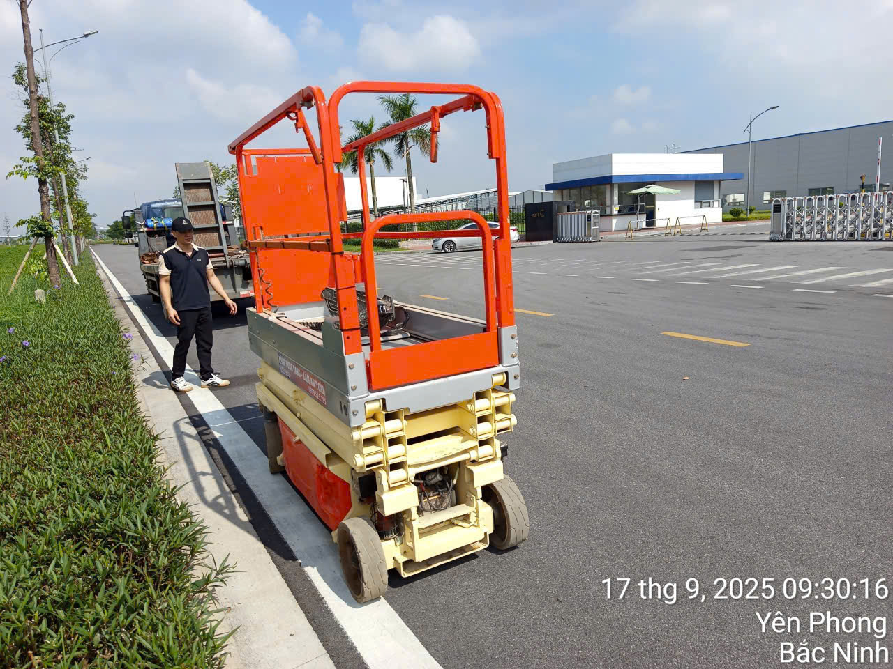 Ngày 17/9/2025 MC Industries cung cấp xe nâng người 8m cắt kéo phục vụ bảo trì, bảo dưỡng nhà máy Hyosung Funancial System Vina tại Bắc Ninh.