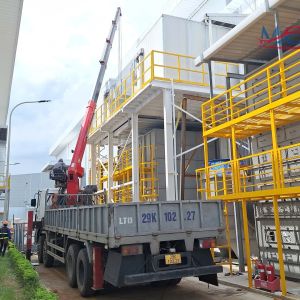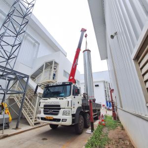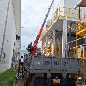 Khách hàng cần thuê xe cẩu thùng để lắp đặt hệ thống bồn sơn máy biến áp trên nóc nhà máy. Khách hàng cần thiết bị chuyển thiết bị bồn sơn cũ xuống và cho bồn phun sơn máy biến áp mới lên để lắp đặt vào.