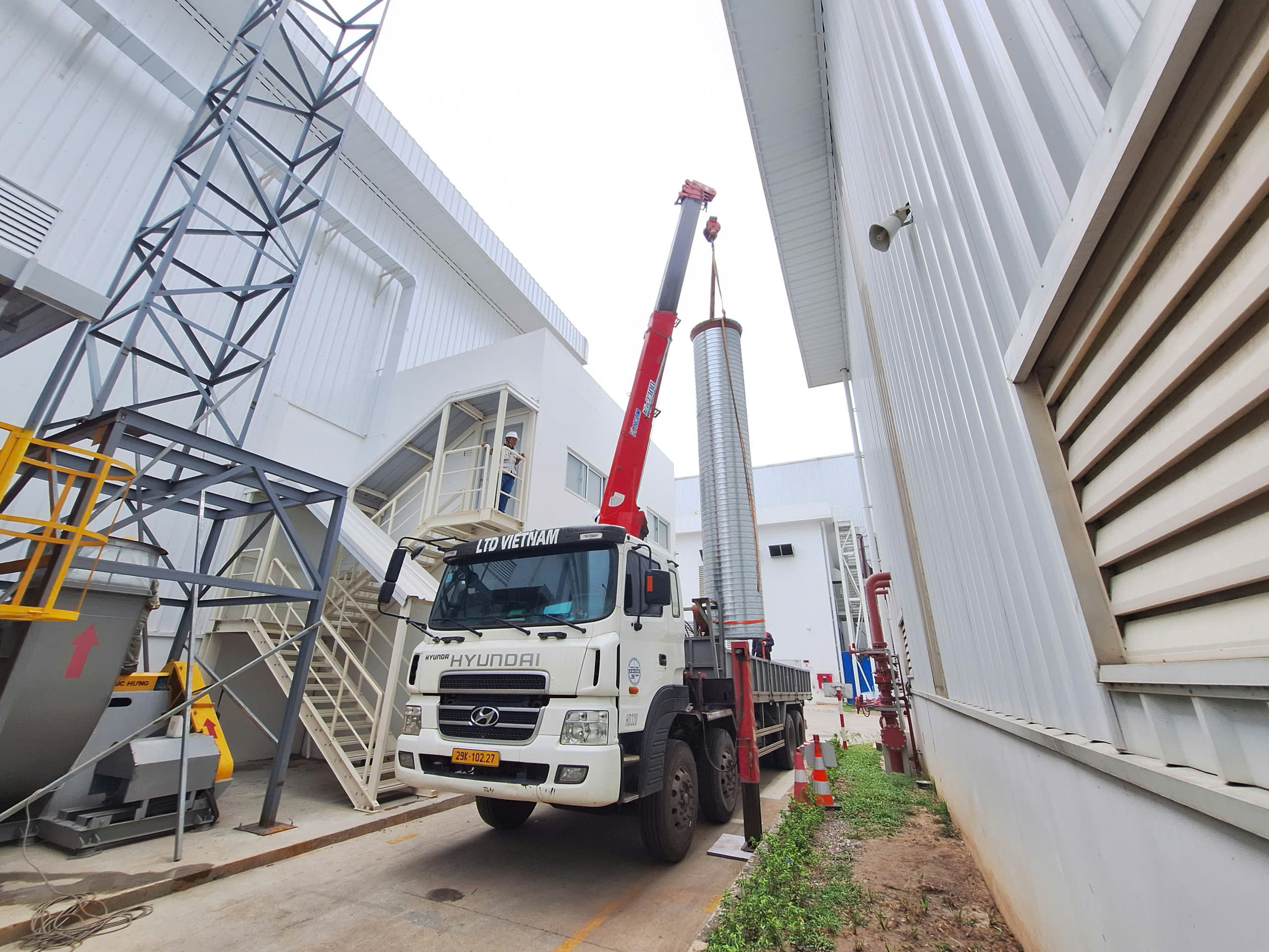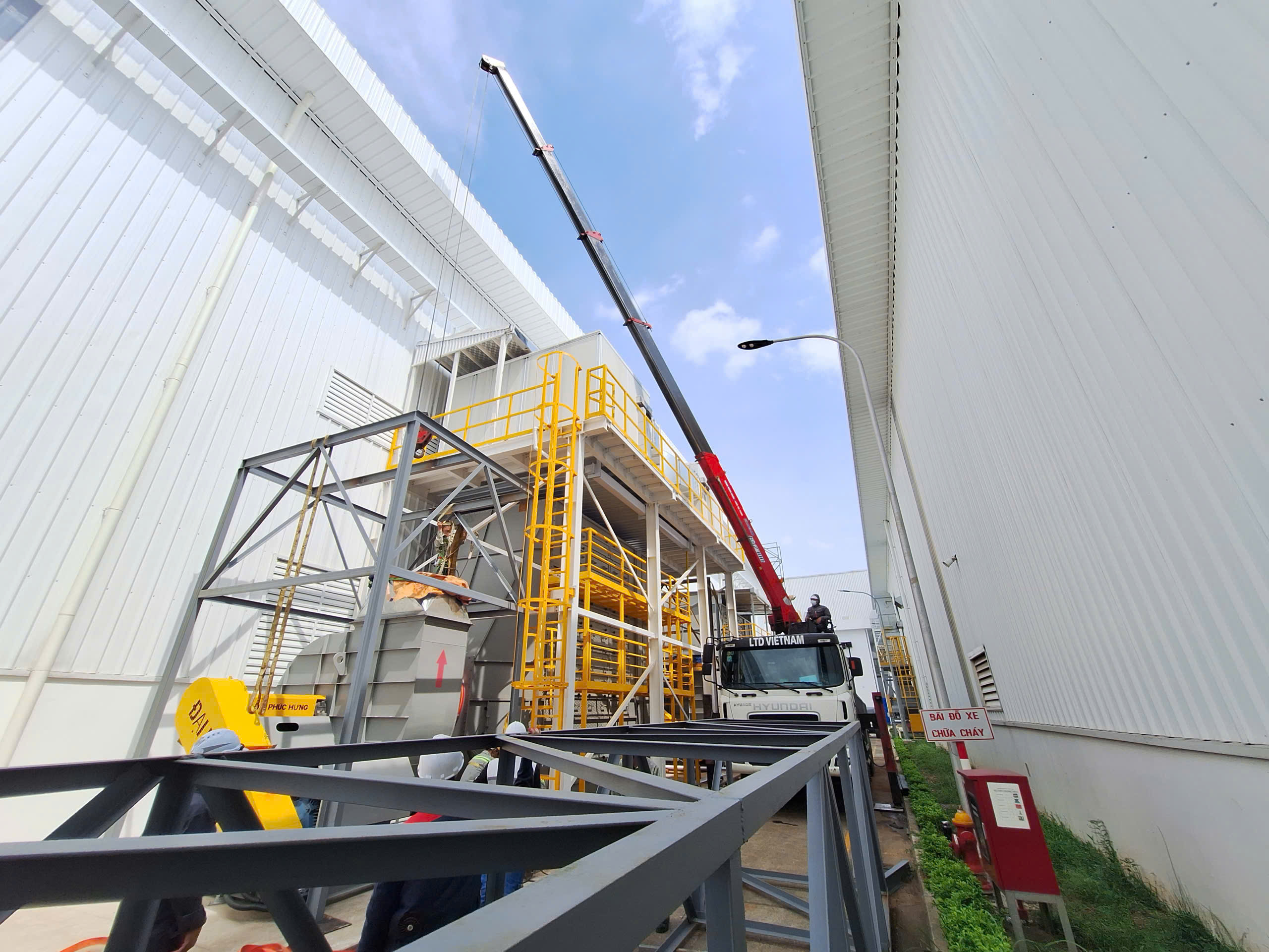 Khách hàng cần thuê xe cẩu thùng để lắp đặt hệ thống bồn sơn máy biến áp trên nóc nhà máy. Khách hàng cần thiết bị chuyển thiết bị bồn sơn cũ xuống và cho bồn phun sơn máy biến áp mới lên để lắp đặt vào.