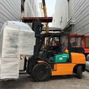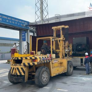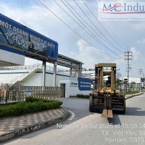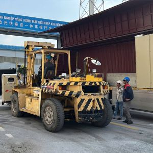Tại dự án này đơn vị sử dụng xe cẩu 50 tấn, xe nâng hàng 7 tấn, xe nâng hàng 5 tấn thực hiện quá trình nâng hạ và đưa hàng hóa lên tầng 2 của nhà máy.