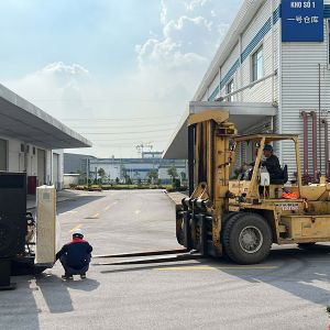 Đơn vị sử dụng cầu nâng và dùng cẩu để nâng hạ hàng hóa từ tầng 1 lên trên tầng 2, khi lên tầng 2 đơn vị sử dụng con lăn và xe nâng hàng kéo tay để đẩy hàng hóa vào vị trí lắp đặt.