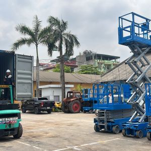 MC Industries cung cấp dịch vụ rút xe nâng người từ container xuống cho công ty JCT Việt Nam