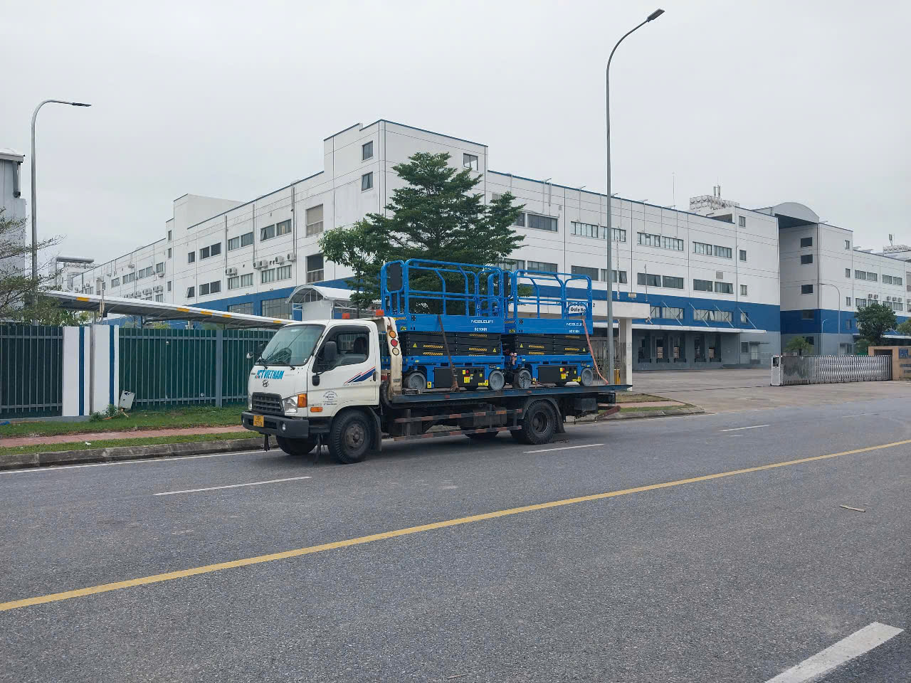 Khi nhận được thông tin khách hàng đơn vị có sẵn thiết bị xe nâng người cắt kéo 10m để bàn giao nhanh nhất cho khách hàng. Khi khách hàng báo cần có xe ngay để làm việc đơn vị đã lên lịch cho 2 xe nâng người cắt kéo 10m của Noblelift mới cứng để phục vụ khách hàng.