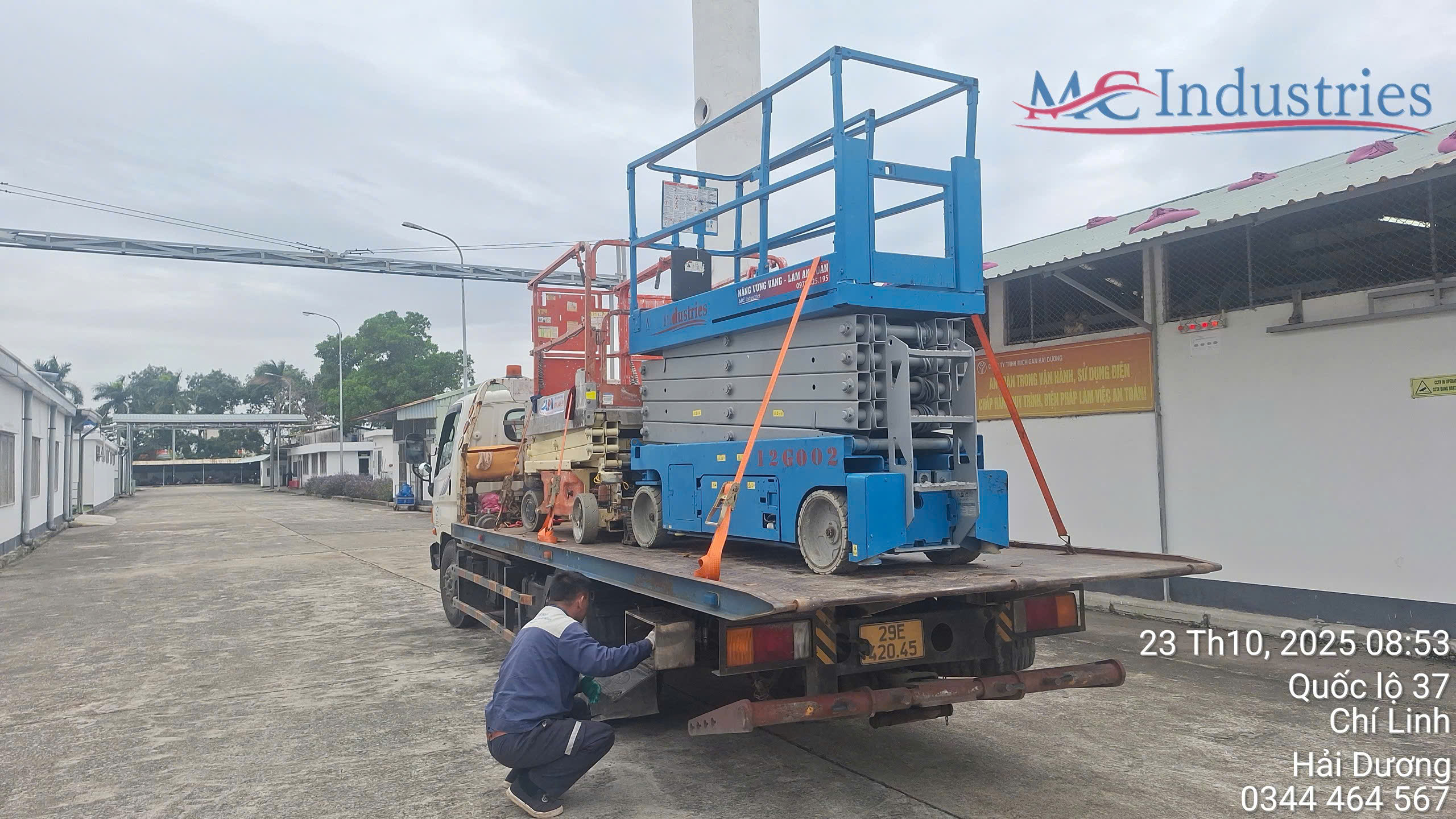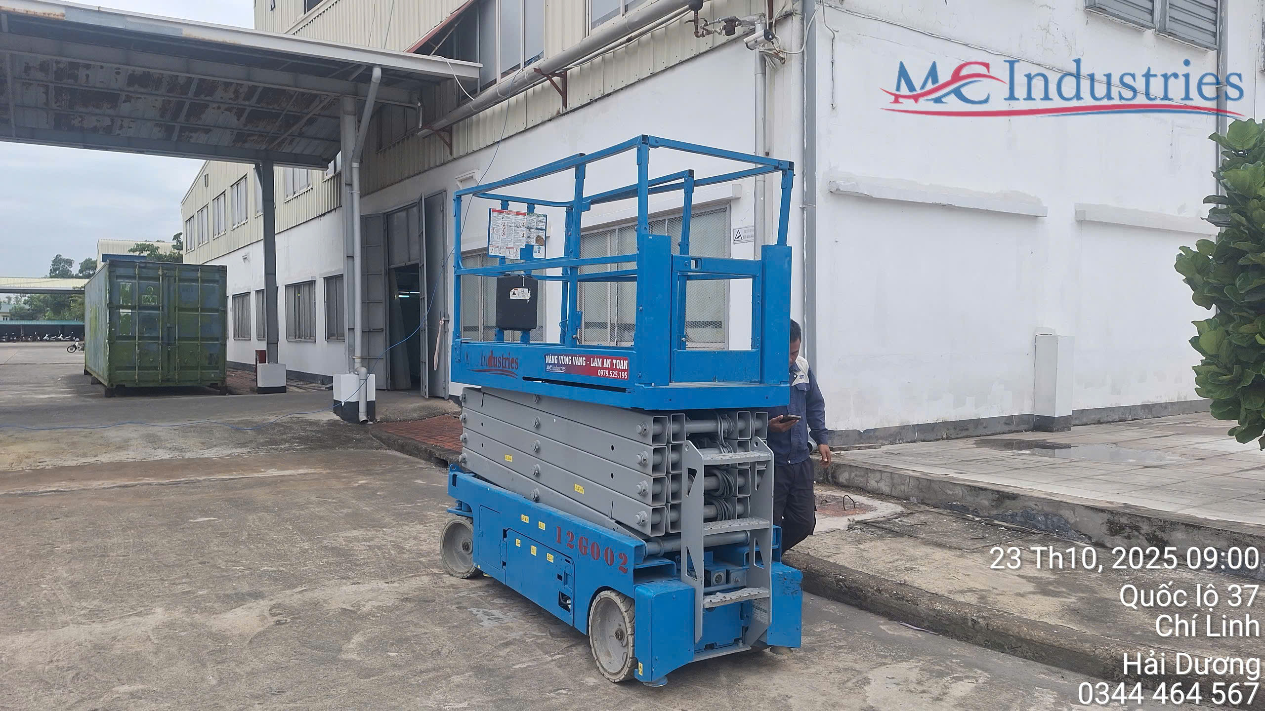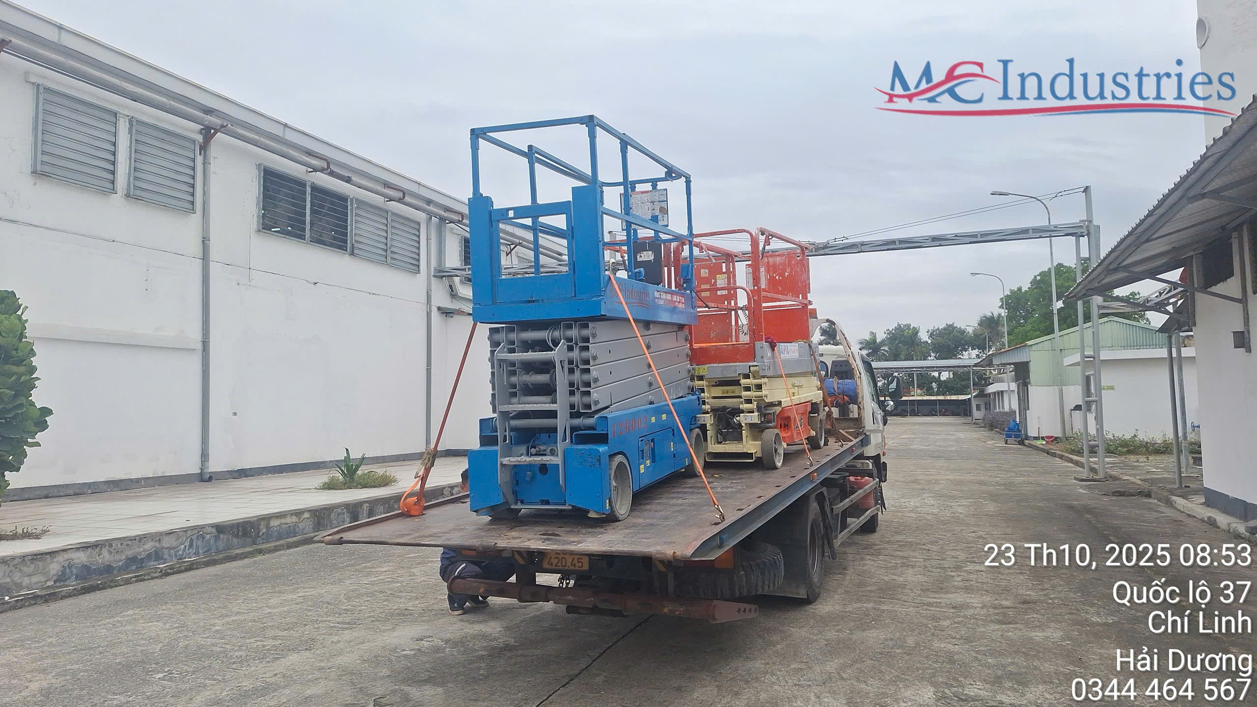 Ngày 23/10/2025 MC Industries cung cấp xe nâng người cắt kéo 12m chạy điện phục vụ bảo trì, bảo dưỡng nhà máy Michigan tại Hải Phòng.