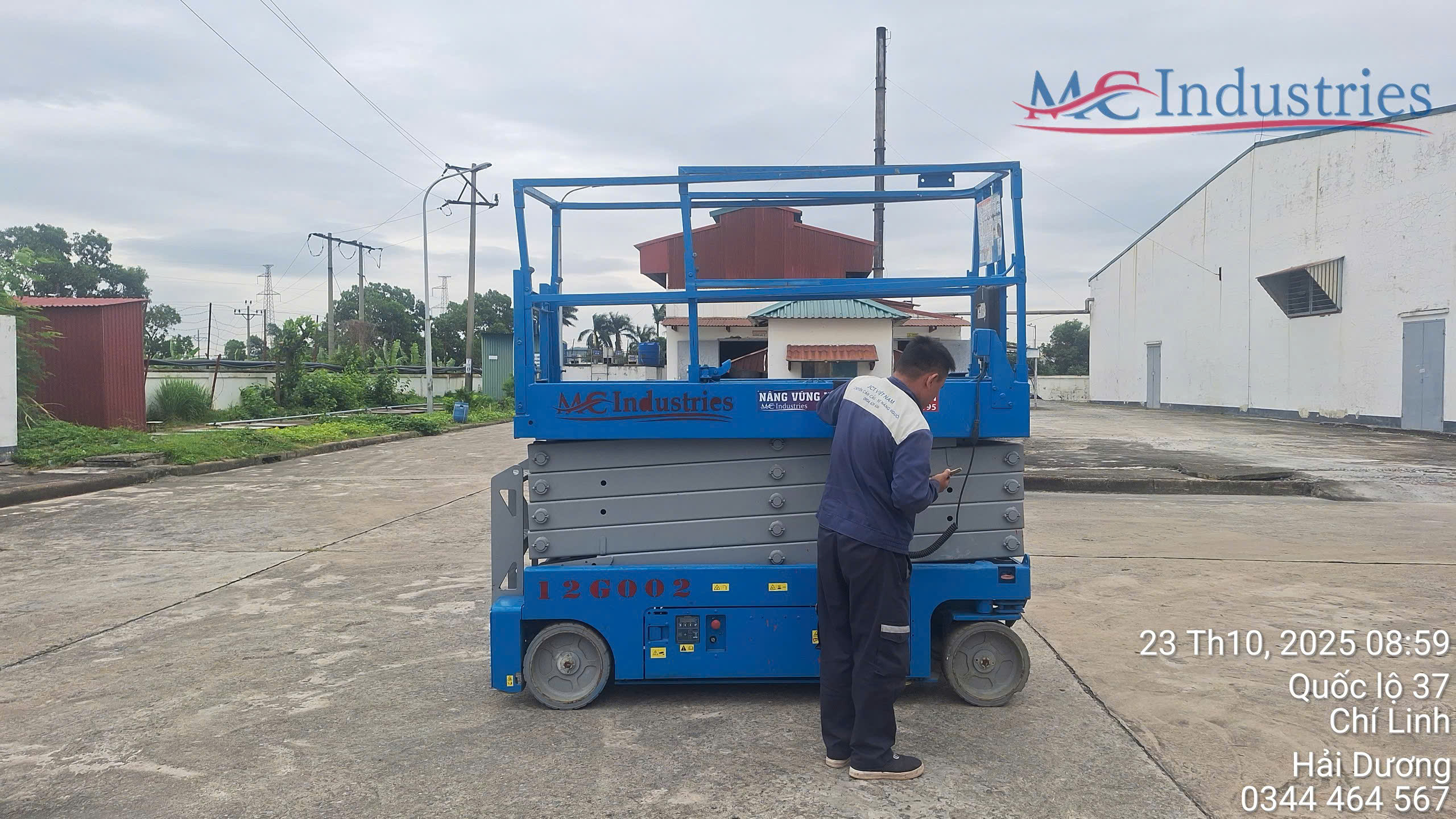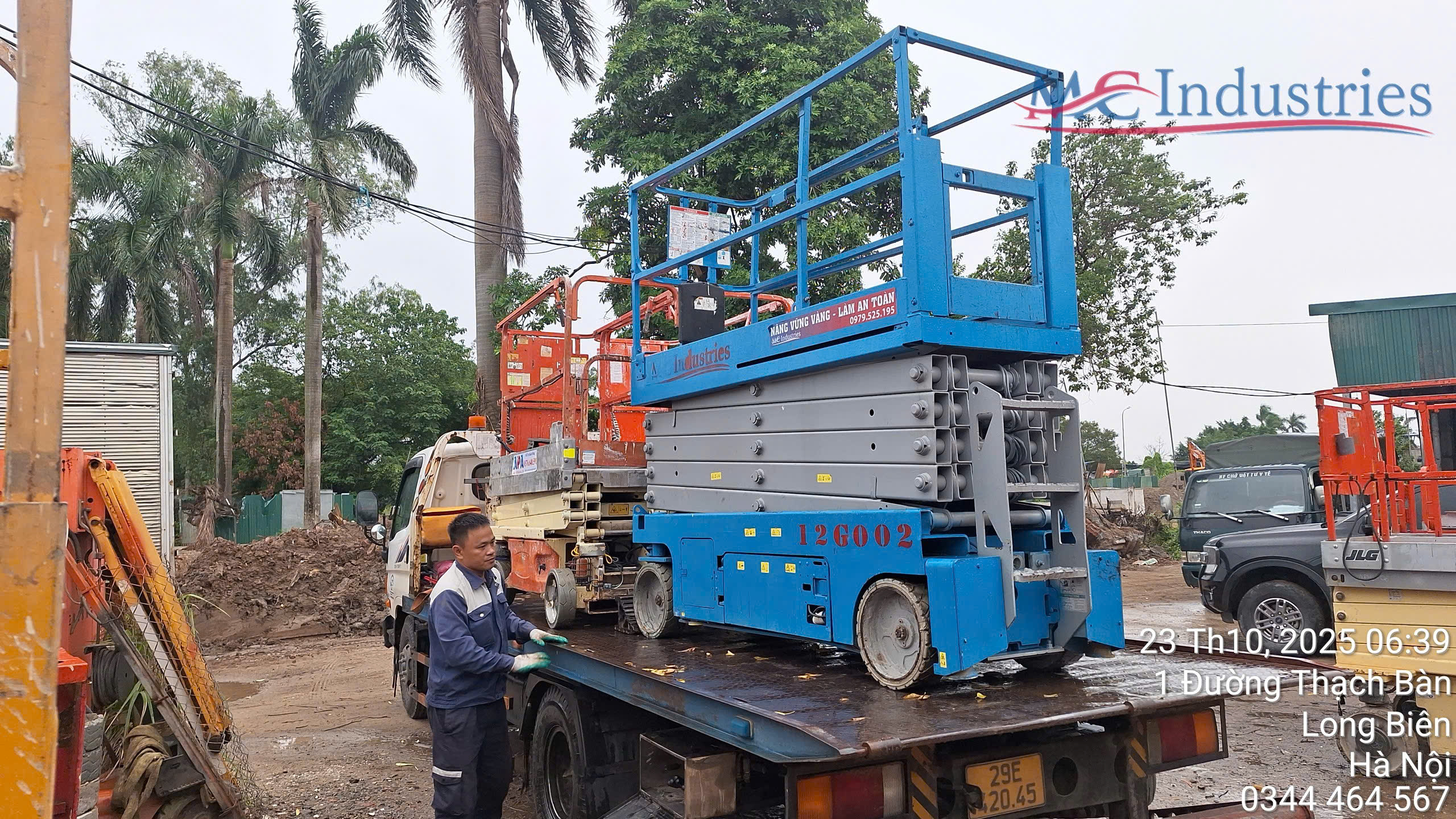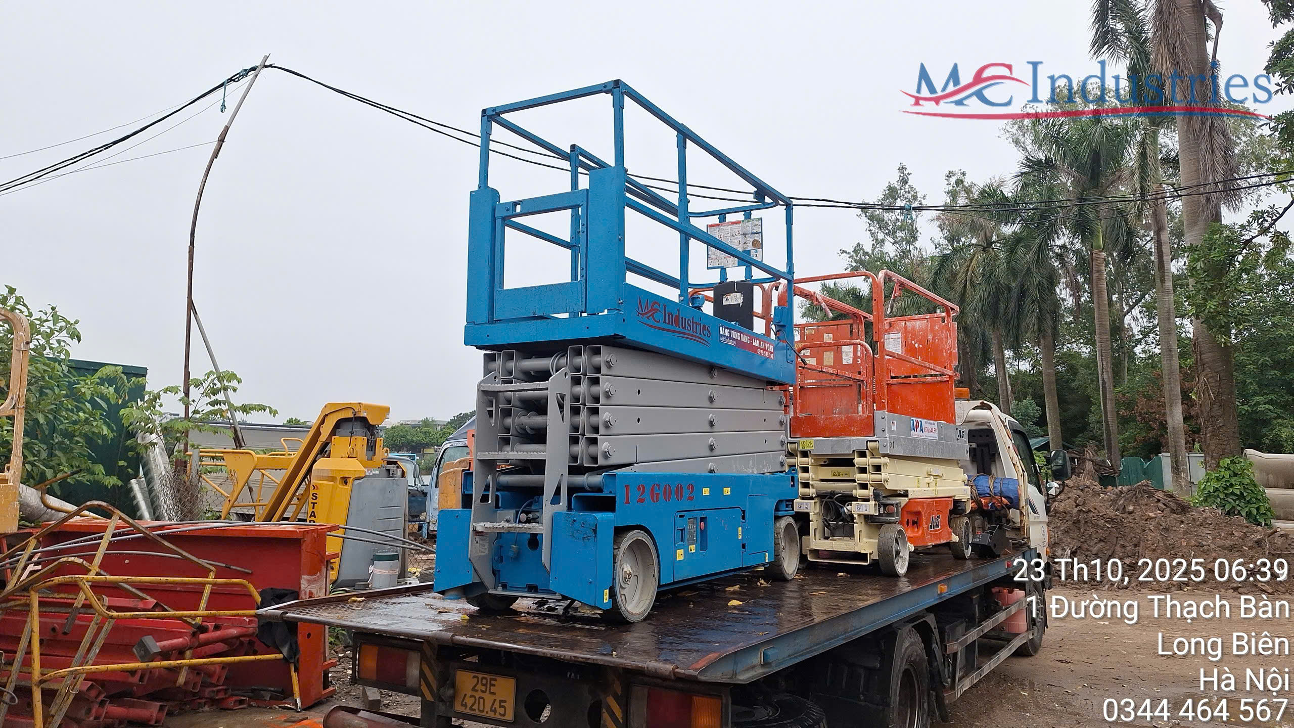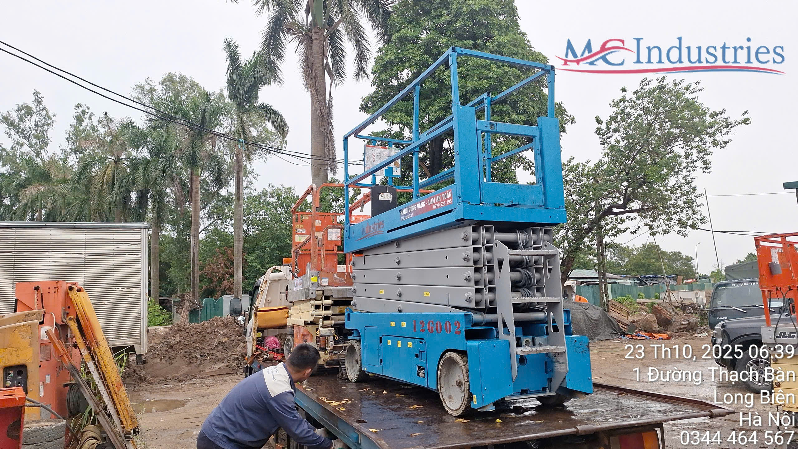 Ngày 23/10/2025 MC Industries cung cấp xe nâng người cắt kéo 12m chạy điện phục vụ bảo trì, bảo dưỡng nhà máy Michigan tại Hải Phòng.