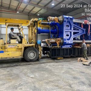 Với máy ép nhựa to, dài, rộng và có tải trọng nâng lên đến mấy chục tấn nên cần lượng lớn đội ngũ nhân công, máy móc để thực hiện công việc này.