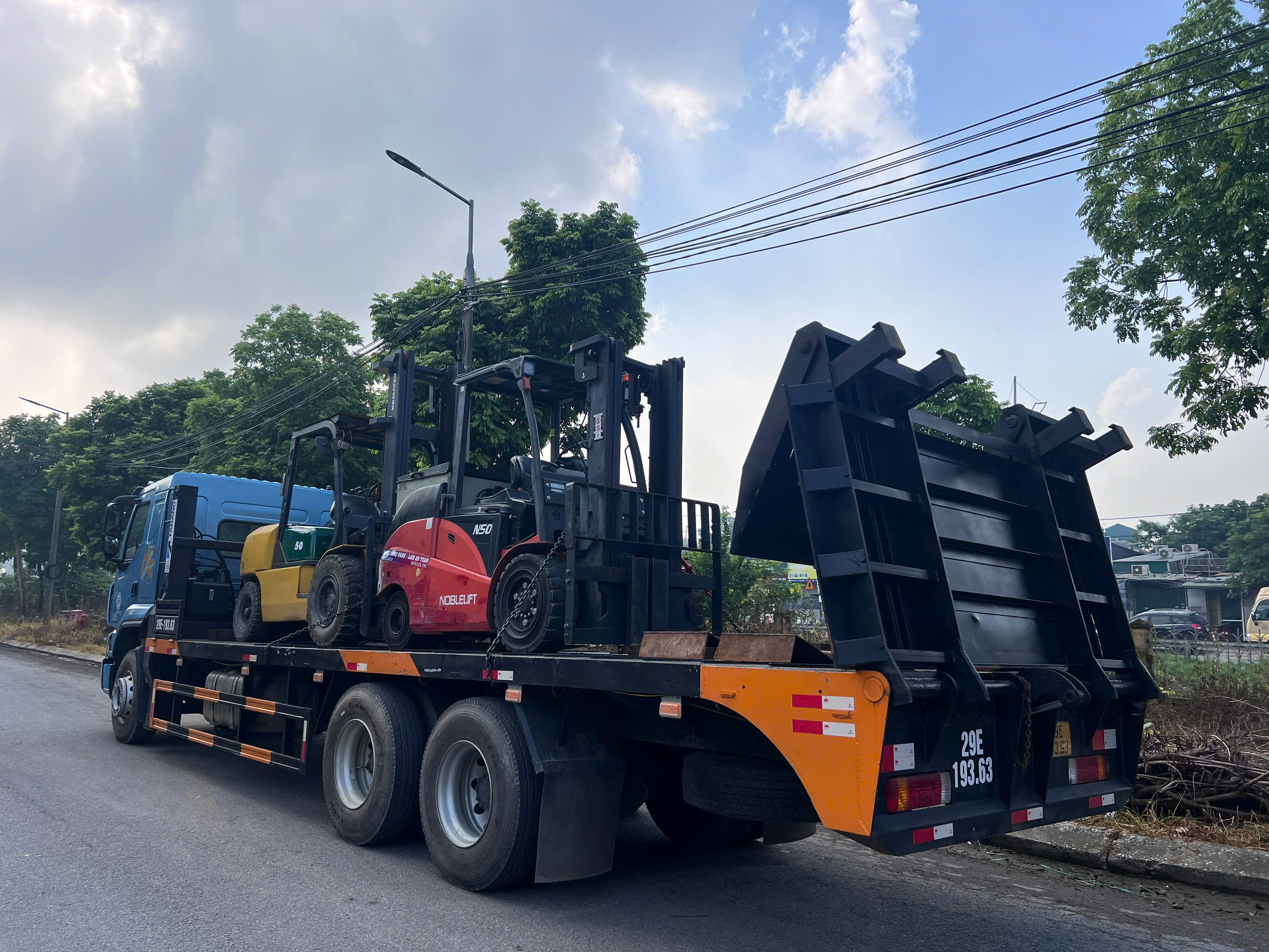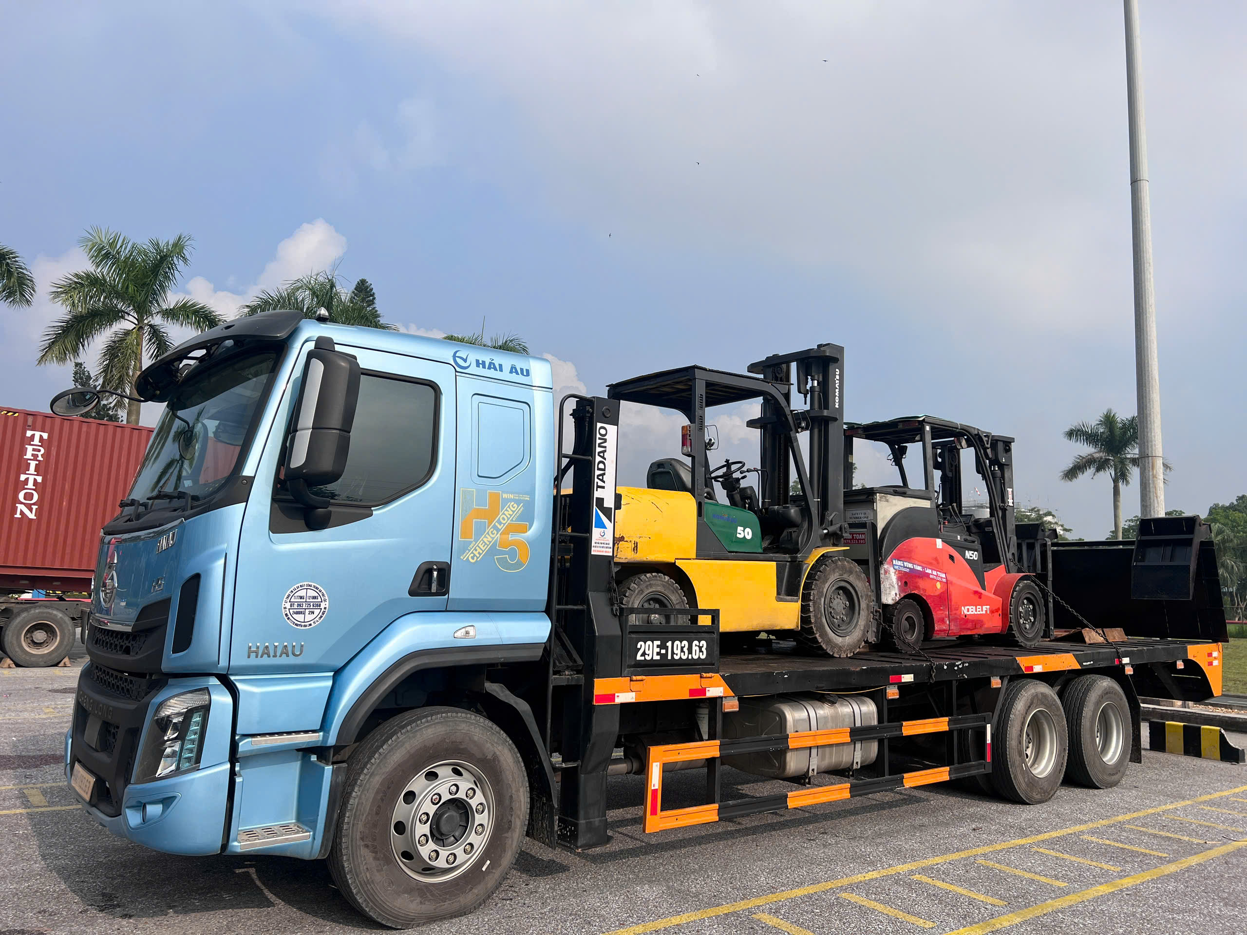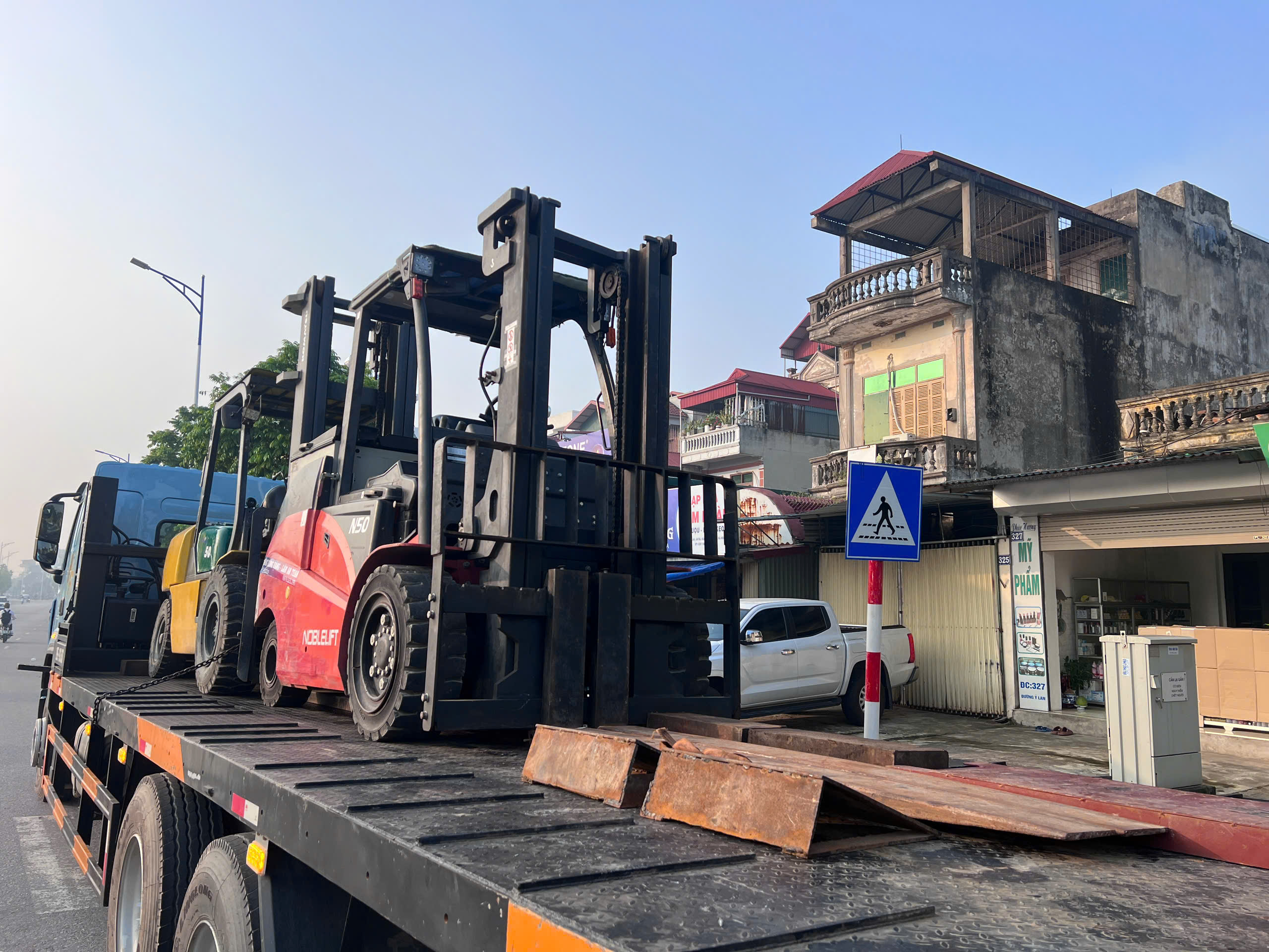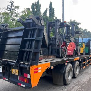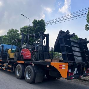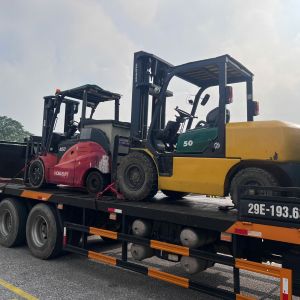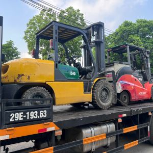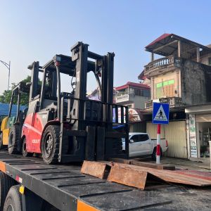 Khách hàng cần sử dụng 1 xe nâng 5 tấn chạy dầu nâng hạ hàng hóa từ bên ngoài nhà máy vào cửa, rồi xe nâng chạy điện 5 tấn sẽ di chuyển vào bên trong nhà máy.