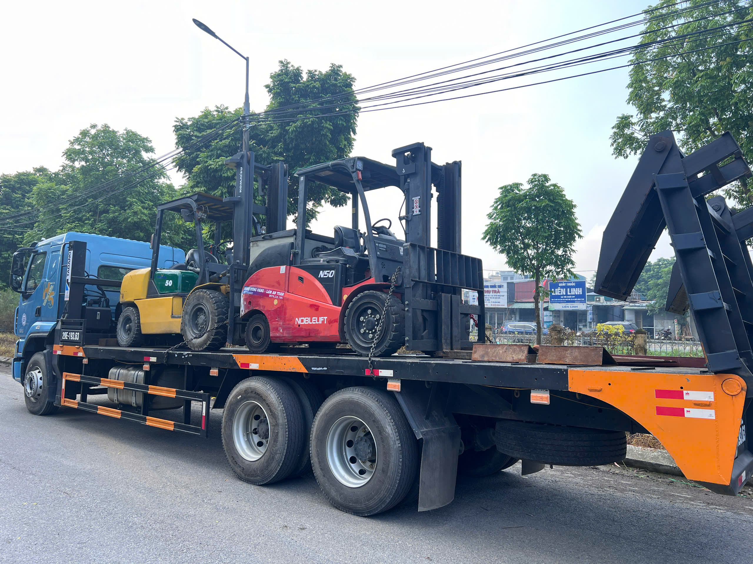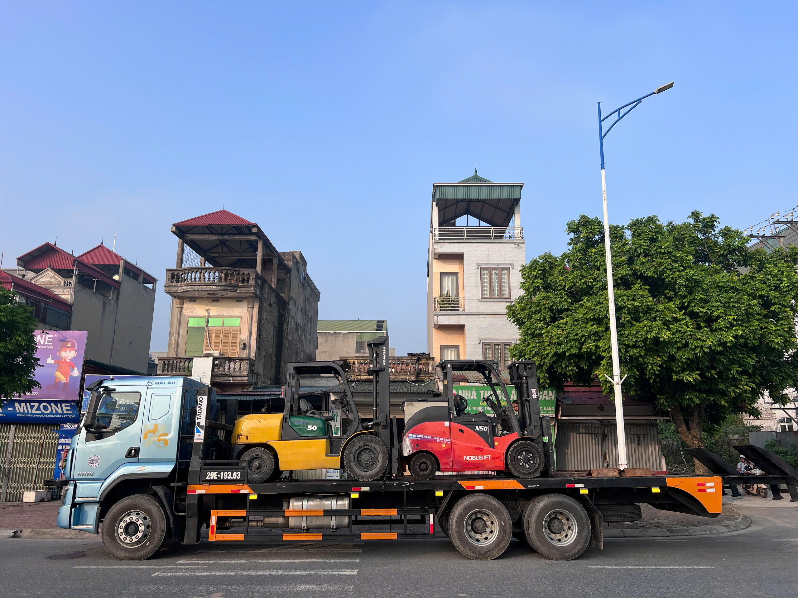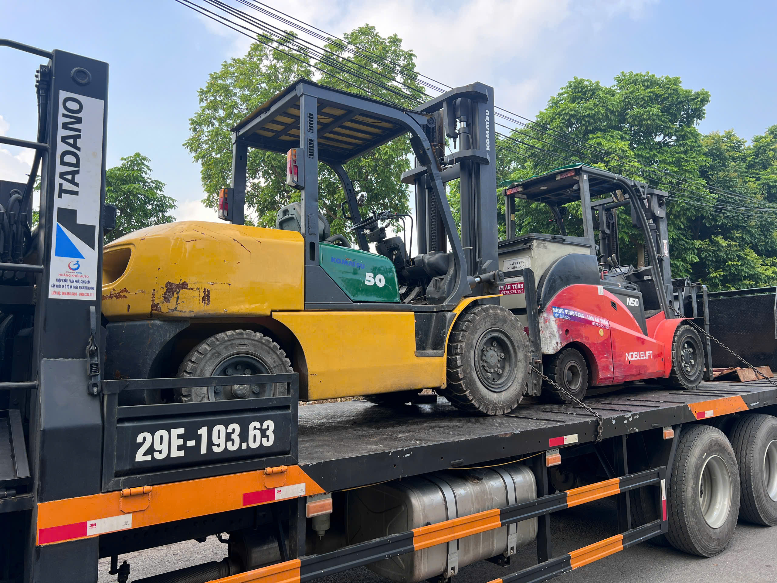 Khách hàng cần sử dụng 1 xe nâng 5 tấn chạy dầu nâng hạ hàng hóa từ bên ngoài nhà máy vào cửa, rồi xe nâng chạy điện 5 tấn sẽ di chuyển vào bên trong nhà máy.