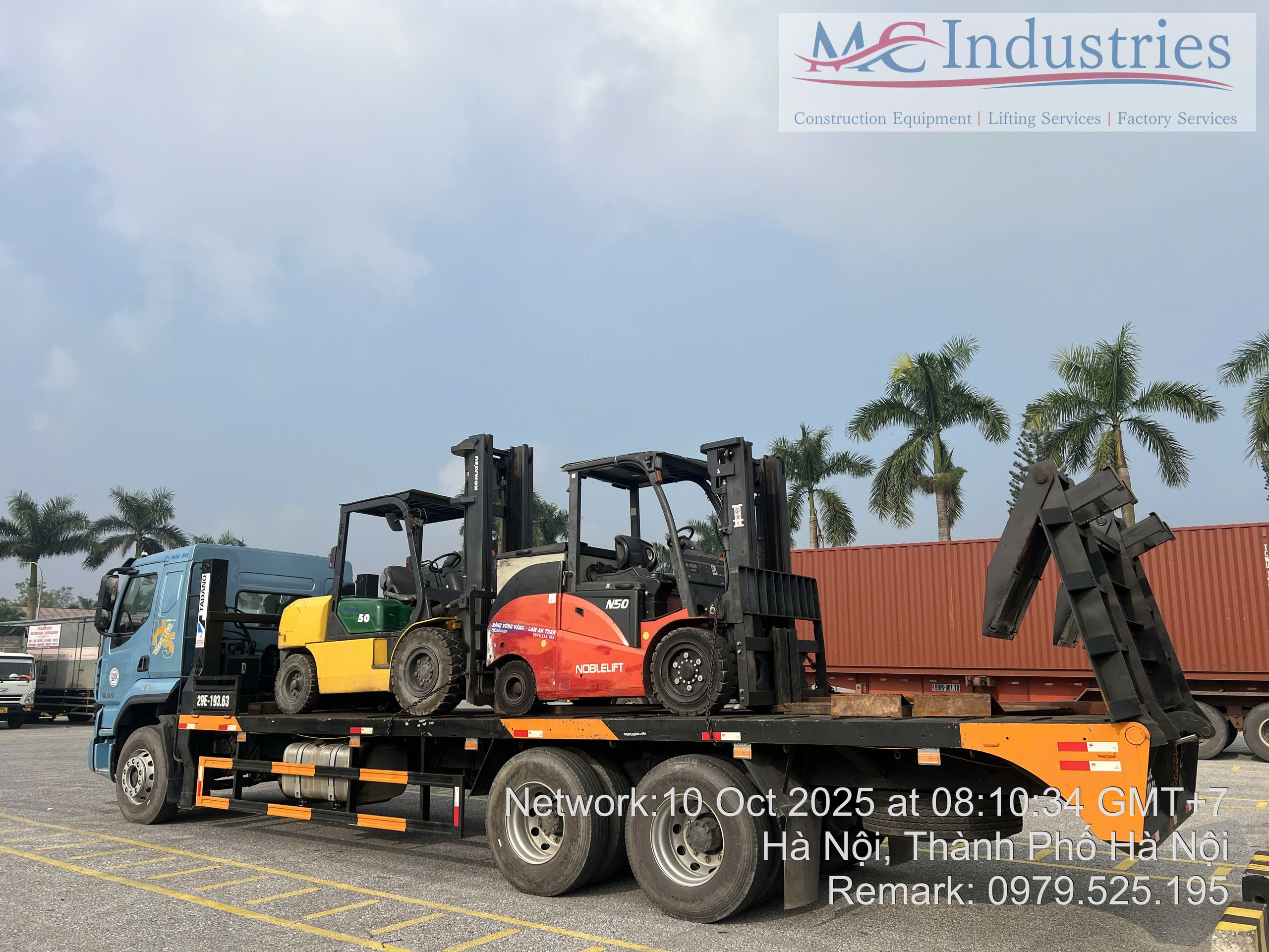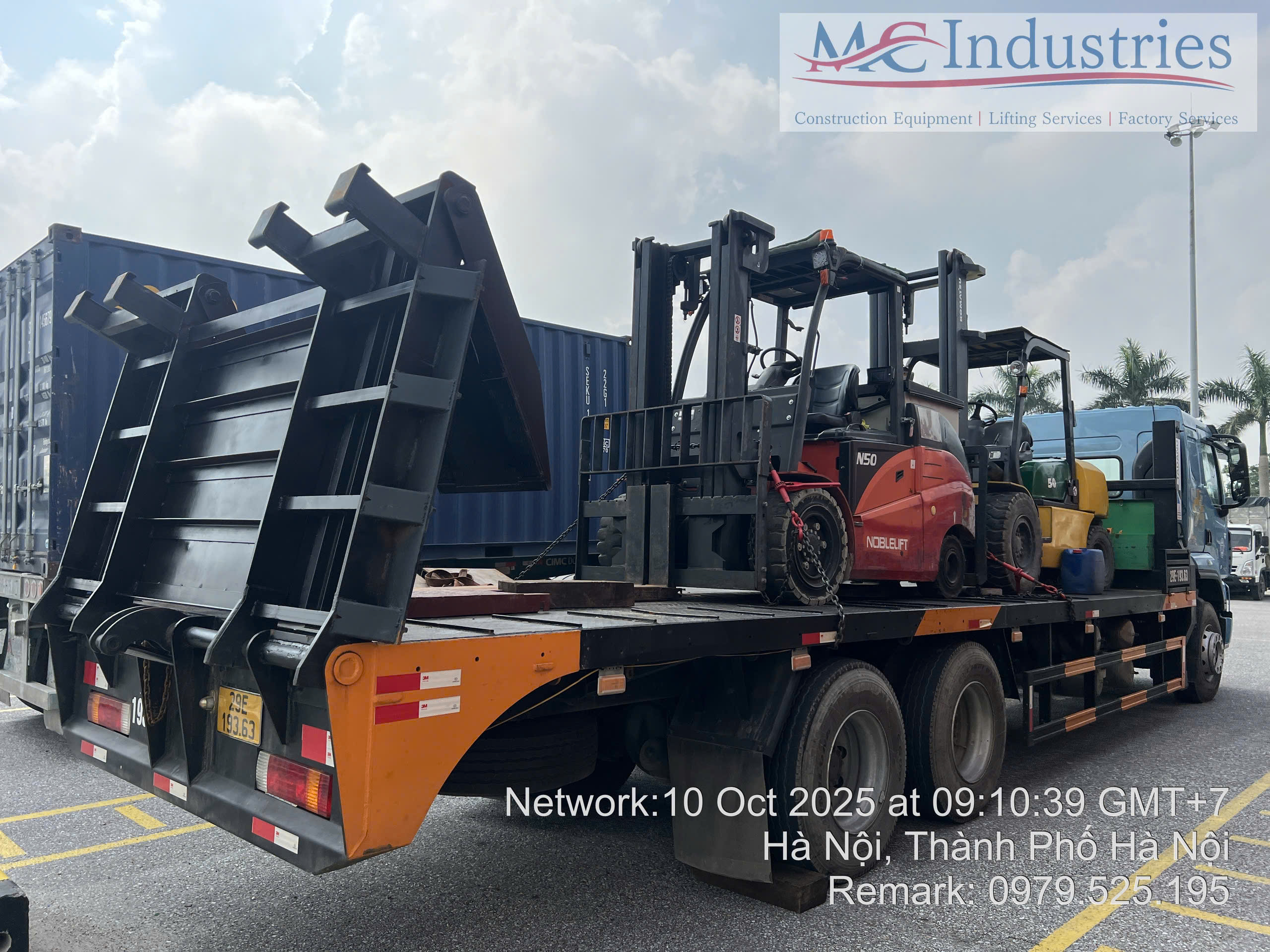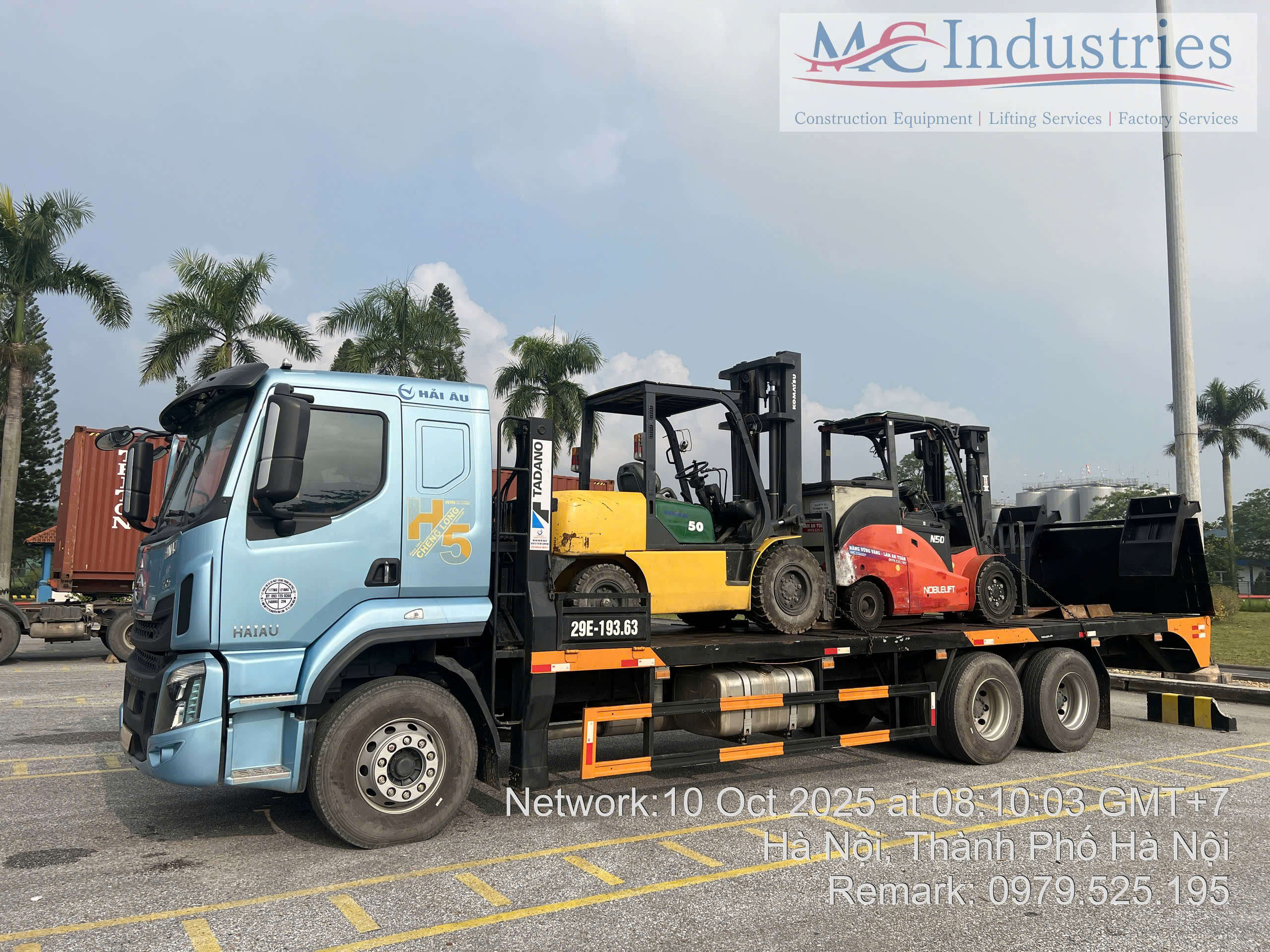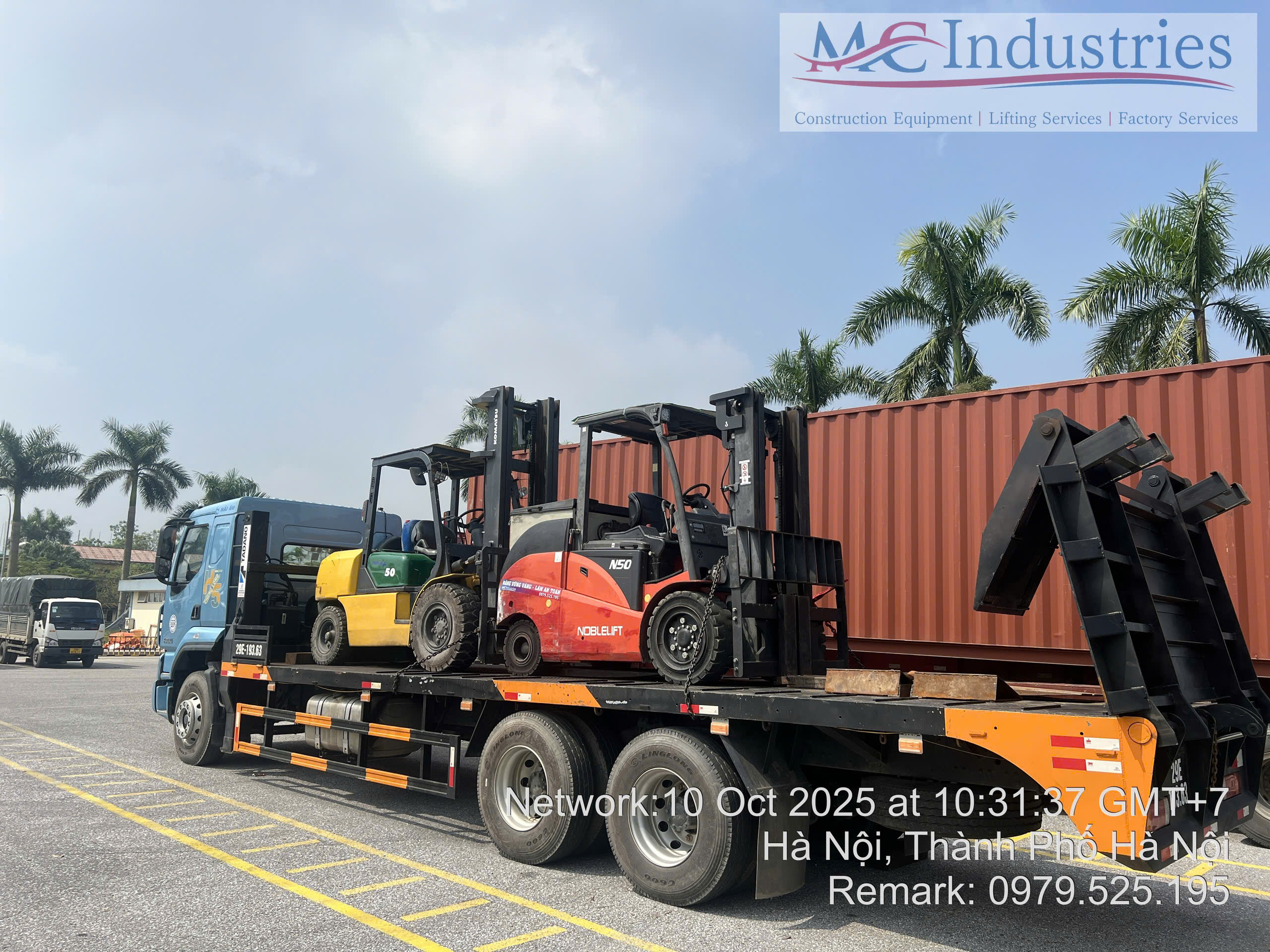 Ngày 10/10/2025 MC Industries cung cấp 2 xe nâng hàng 5 tấn, 1 xe chạy điện và 1 xe chạy dầu phục vụ nâng hạ lắp đặt máy móc trong nhà máy. Việc thực hiện nâng hạ đã được triển khai kế hoách khi đơn vị chúng tôi khảo sát nhà máy và lên phương án thực hiện công việc.