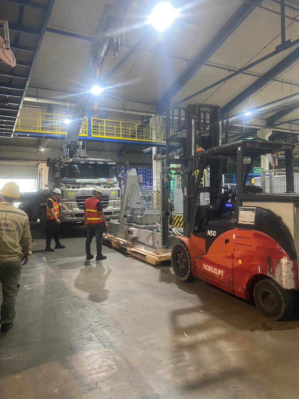 Mỗi giai đoạn sẽ sử dụng những thiết bị máy móc khác nhau. Hiện tại là sử dụng xe nâng hàng để phục vụ nâng hạ và lắp đặt hàng hóa.