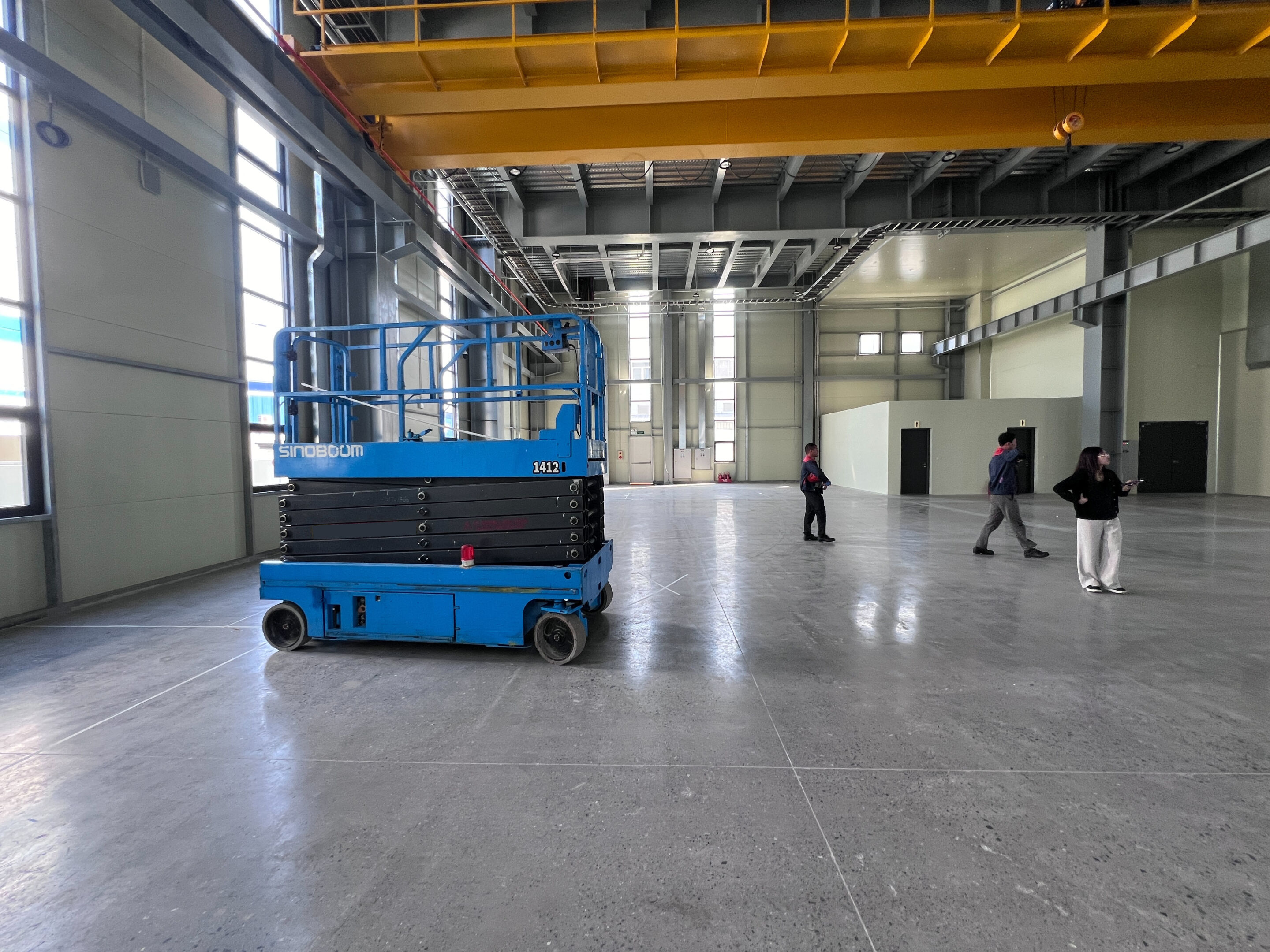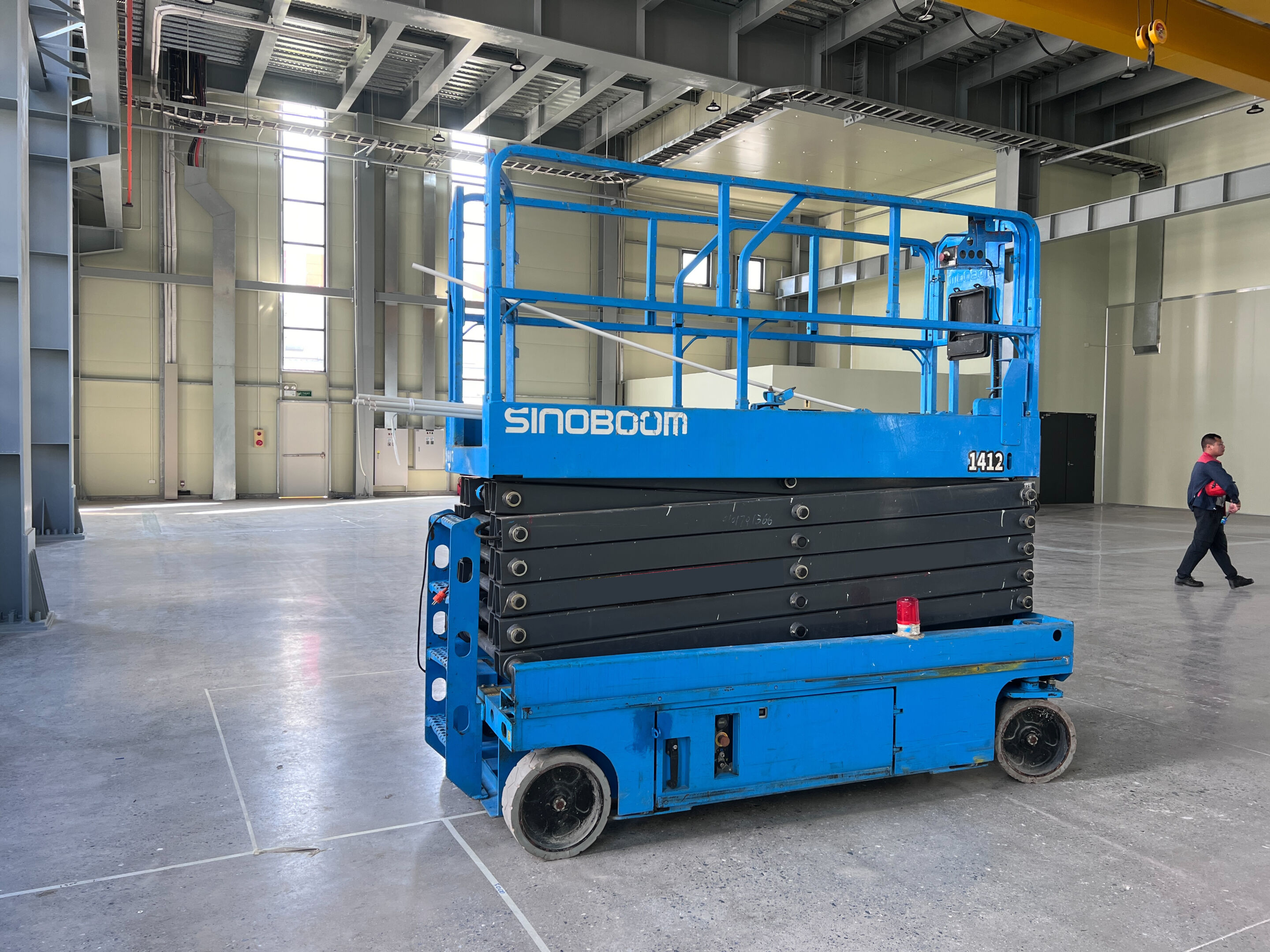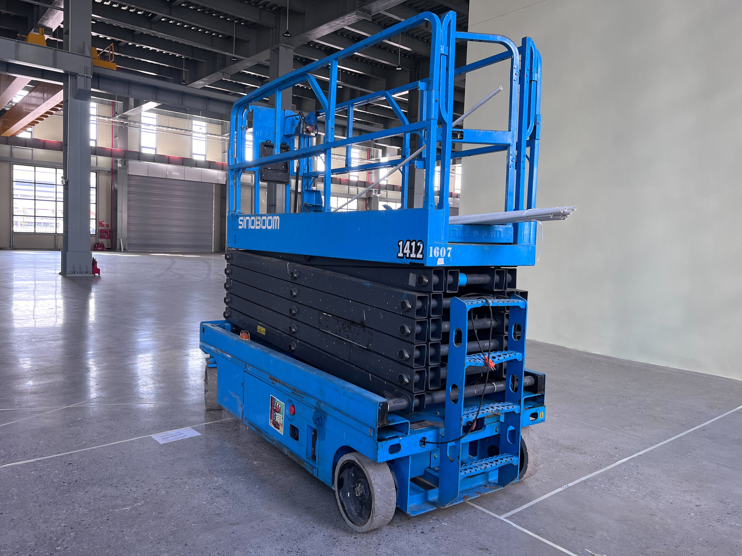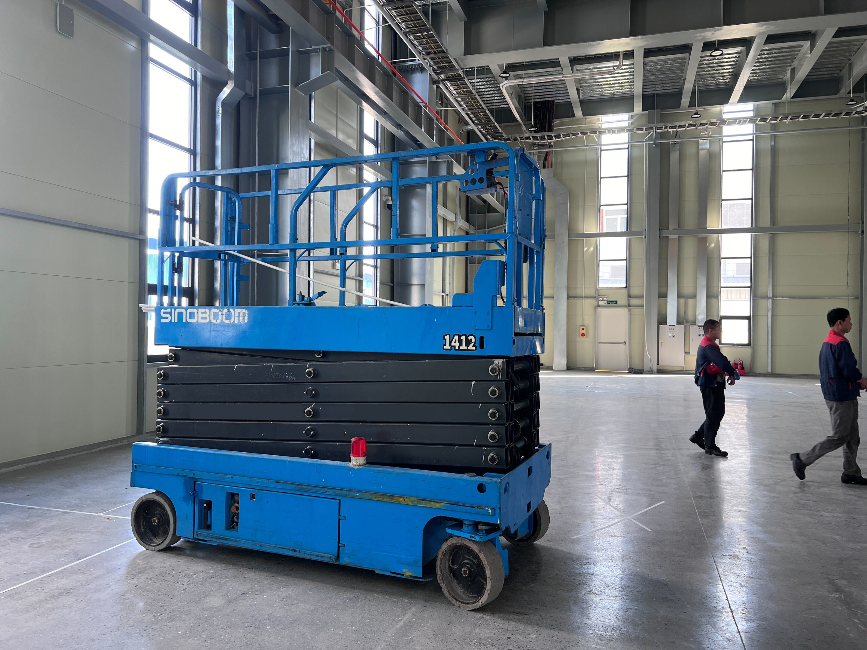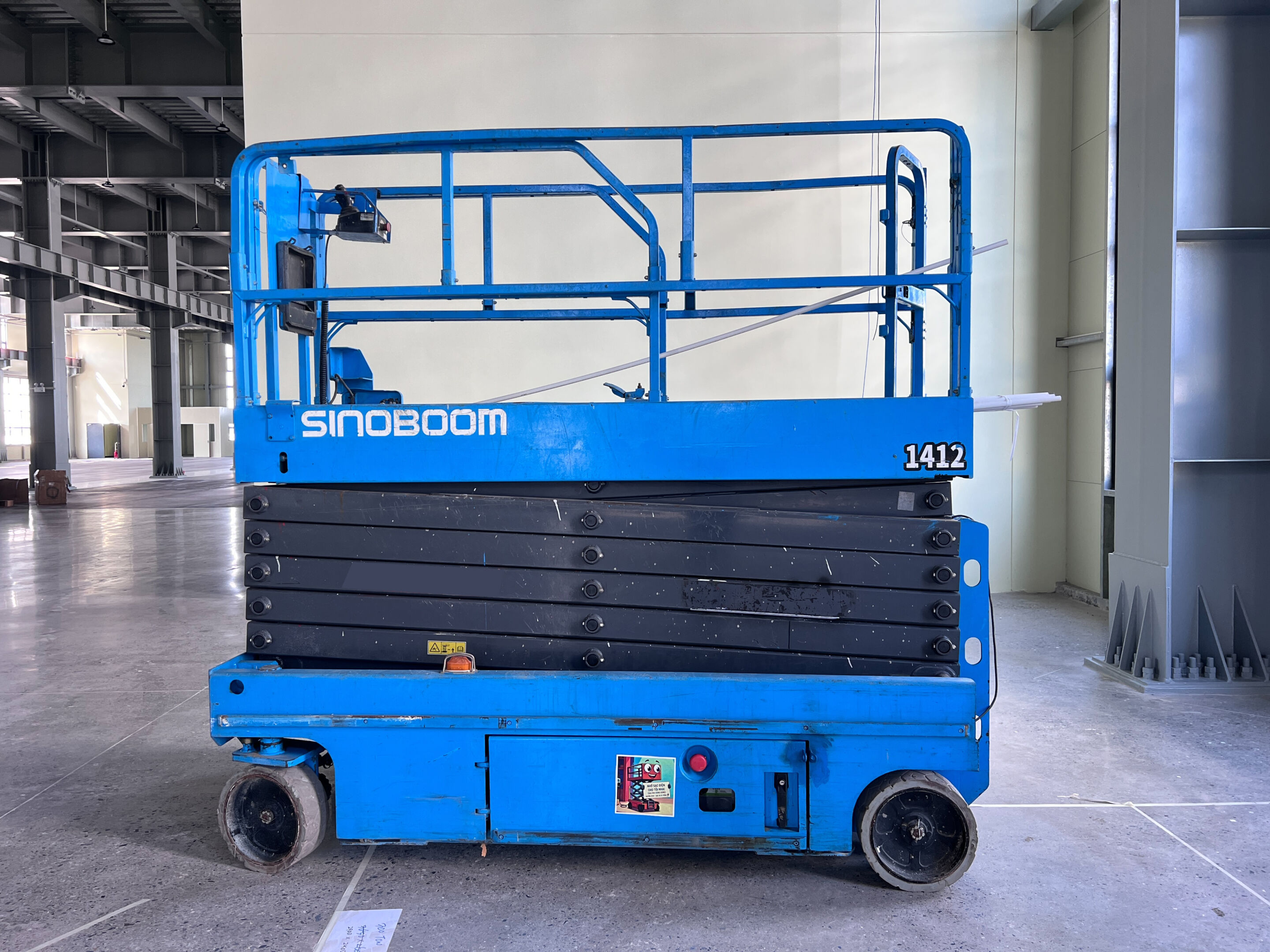 MC Industries bàn giao xe nâng người 16m cắt kéo điện Sinoboom 1412 phục vụ lắp đặt hệ thống PCCC, cơ điện cho nhà máy tại Hưng Yên.