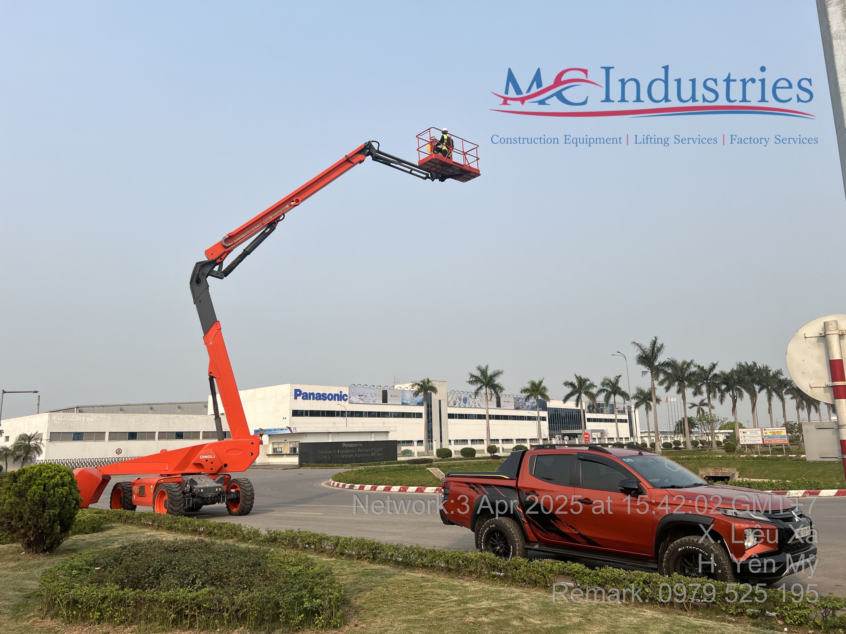 Khách hàng nhà máy liên hệ đến MC Industries cần thuê xe nâng người phục vụ bảo trì, bảo dưỡng nhà máy Panasonic. Khi nhận được yêu cầu khách hàng đơn vị đã trao đổi thêm khách hàng cần khách hàng cung cấp thêm thông tin để đơn vị nắm được đầy đủ và rõ ràng thông tin để tư vấn khách hàng lựa chọn xe phù hợp để thực hiện công việc tốt nhất.