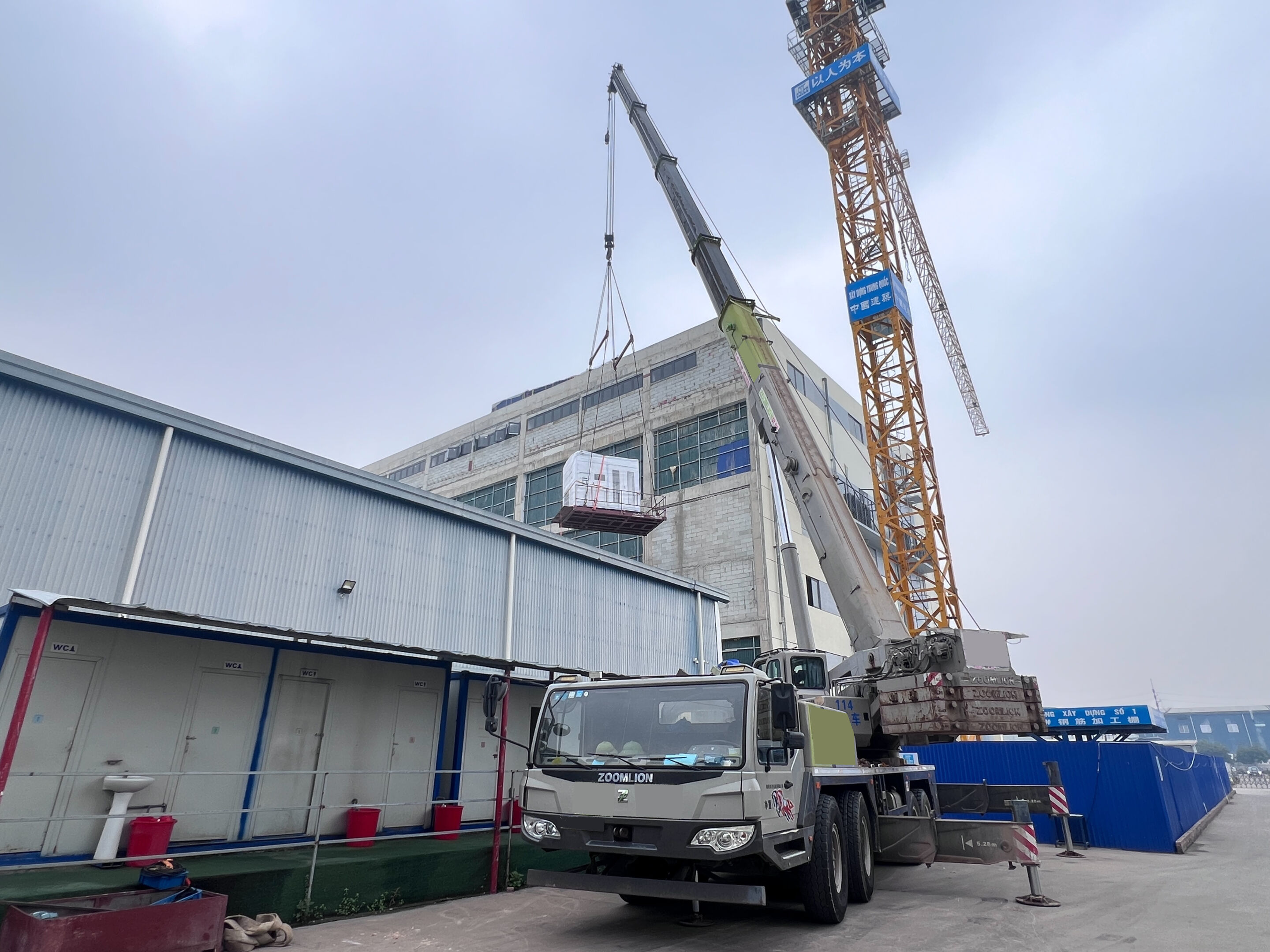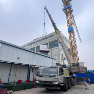 Xe cẩu 100 tấn được sử dụng để cẩu hàng vào bên trong. Là dòng xe cẩu 2 cabin nên chiều dài cần dài đáp ứng được nhu cầu nâng hạ máy móc vào trong nhà máy.