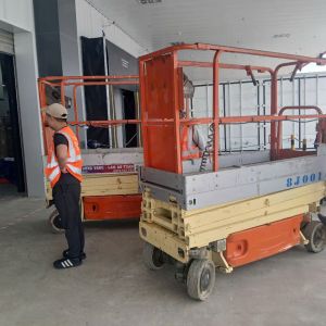 Dòng xe nâng người cắt kéo chạy điện làm việc trong nhà rất ổn, không gây ồn, không gây bẩn sàn nên khách hàng thường lựa chọn sử dụng nhiều hiện nay.