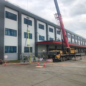 MC Industries cung cấp 2 xe nâng người cắt kéo phục vụ công tác lắp đặt hệ thống đèn điện cho nhà máy Quanta tại KCN Mỹ Thuận Ninh Bình