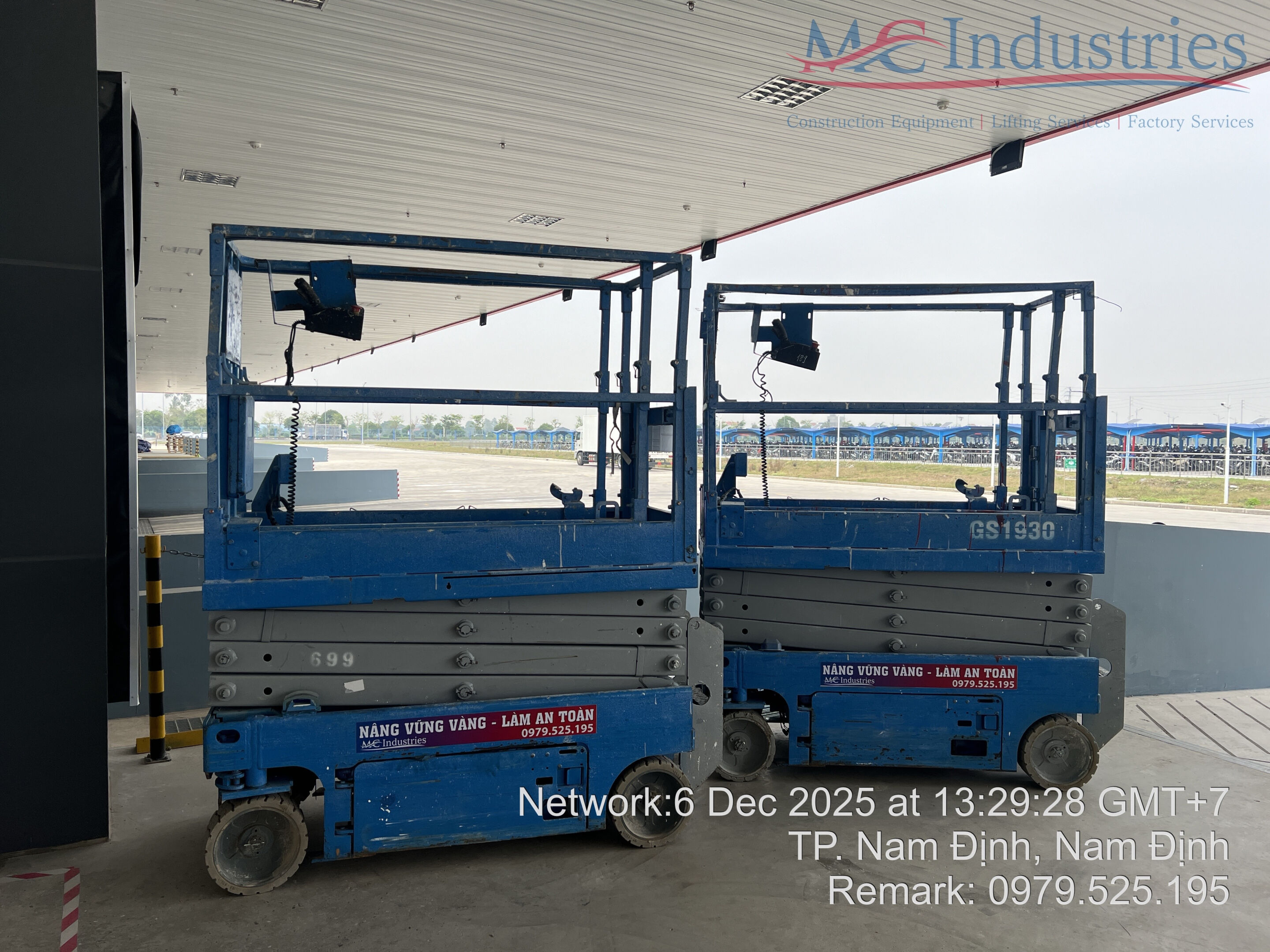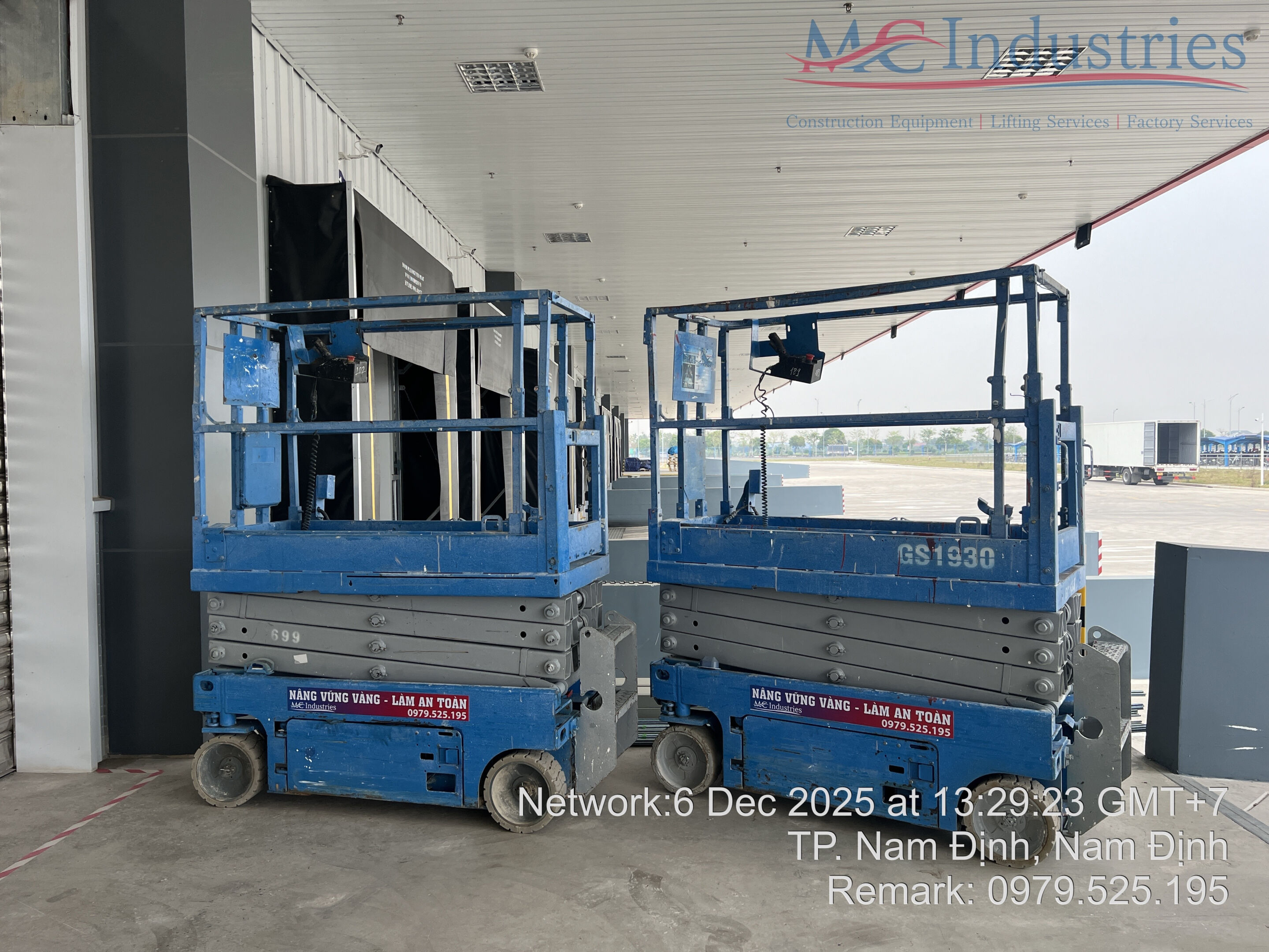 Ngày 7/10/2025 MC Industries cung cấp 2 xe nâng người cắt kéo 12m chạy điện phục vụ lắp đặt hệ thống PCCC, cơ điện nhẹ, Camera, thang máng điện trong nhà máy.