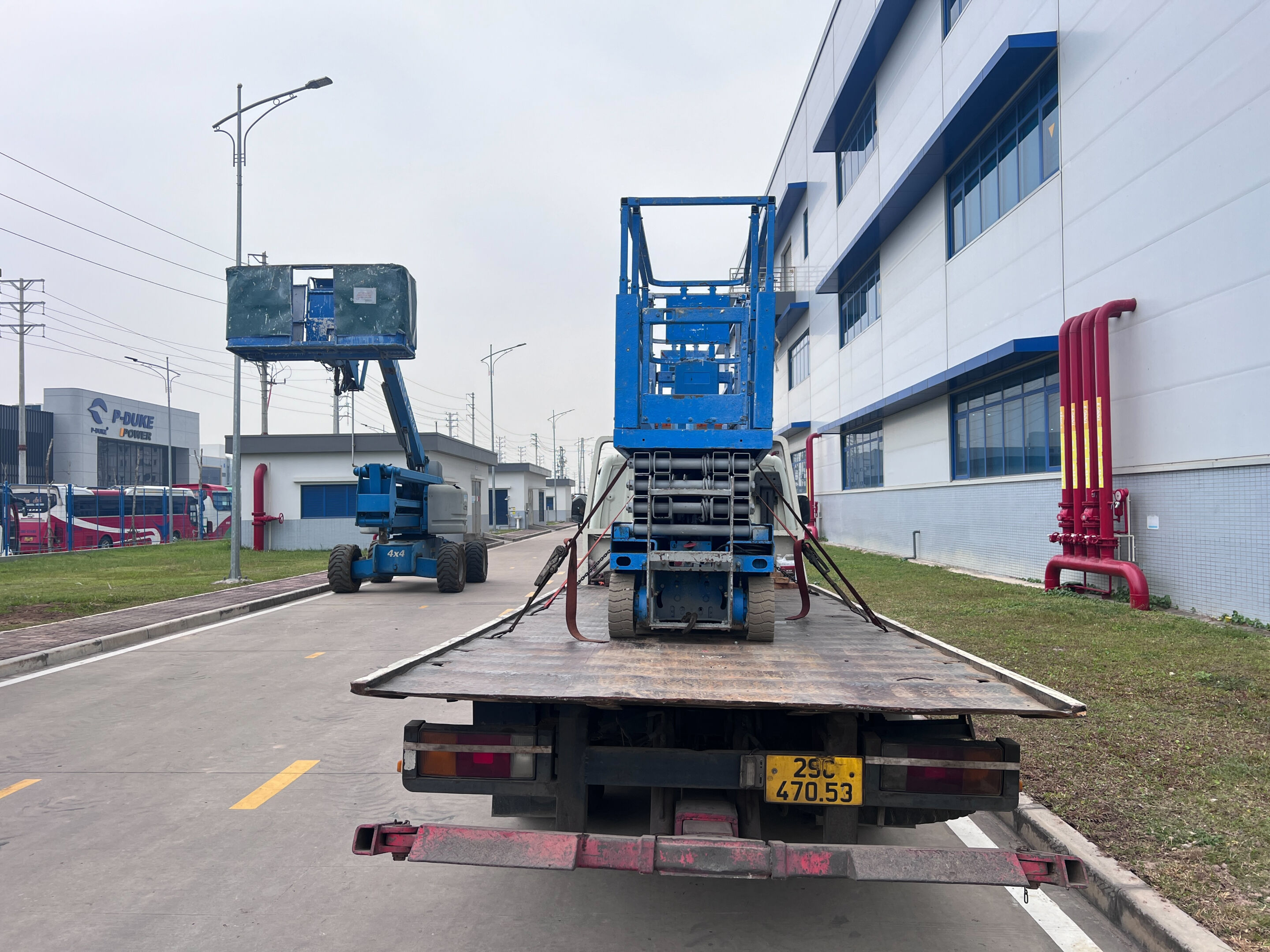 MC Industries cung cấp 2 xe nâng người cắt kéo 8m, xe nâng hàng điện đứng lái, xe cẩu nâng hạ tấm pin mặt trời cho nhà máy phục vụ nhà máy Quanta, Ninh Bình