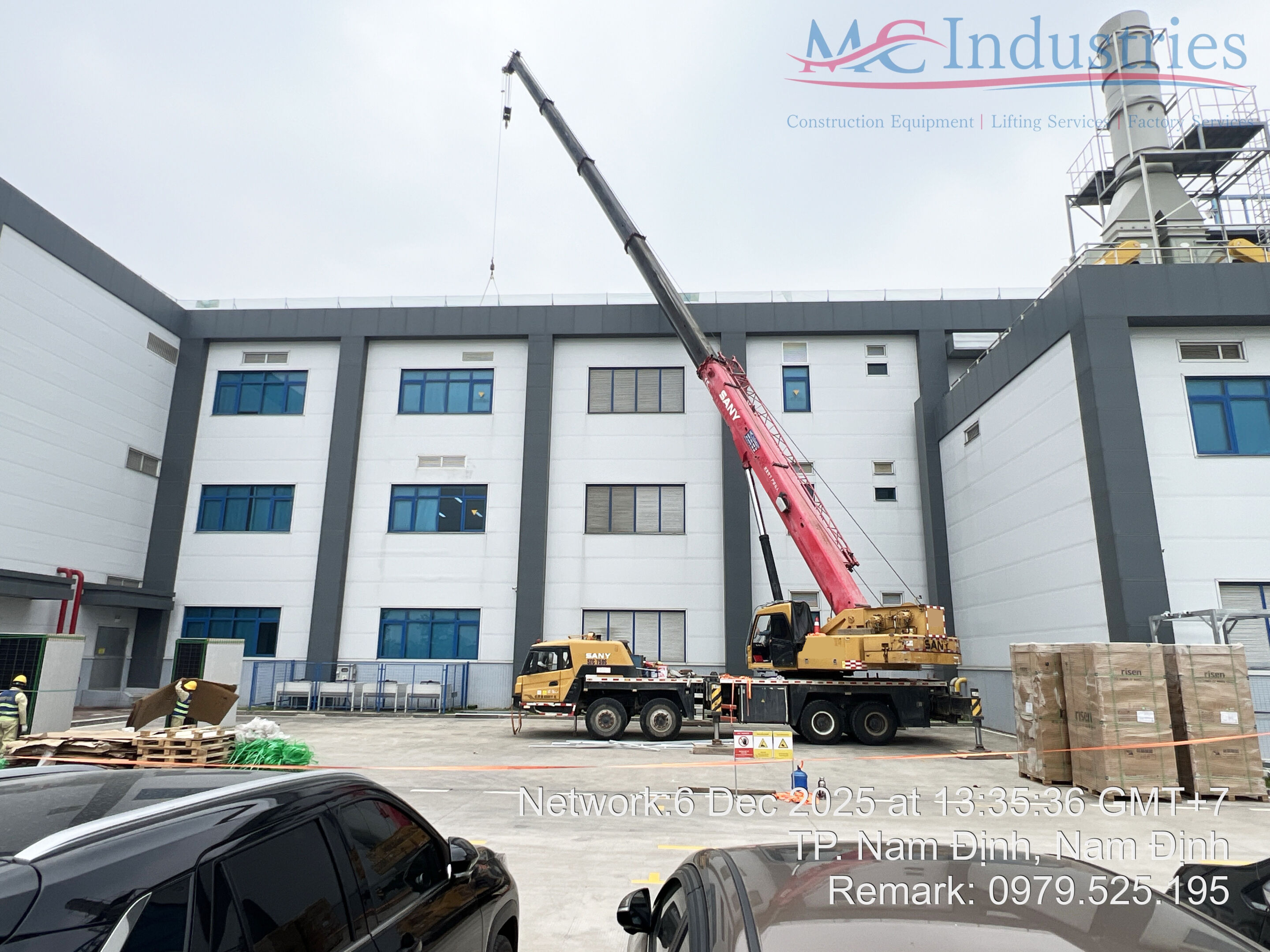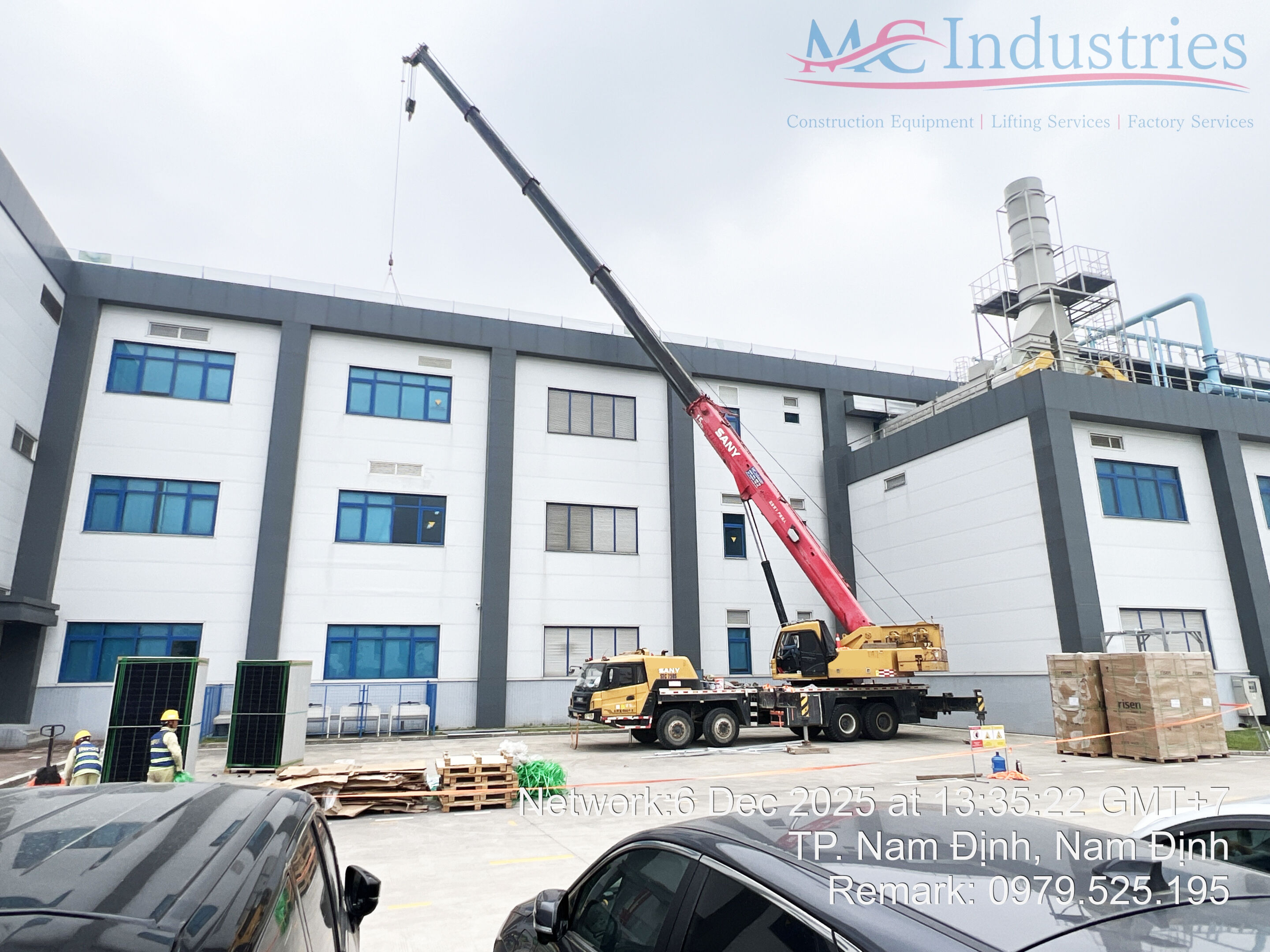 Ngày 29/08/2025 MC Industries cung cấp xe cẩu 50 tấn phục vụ lắp đặt tấm pin năng lượng mặt trời cho nhà máy Quanta tại KCN Mỹ Thuận, Ninh Bình.