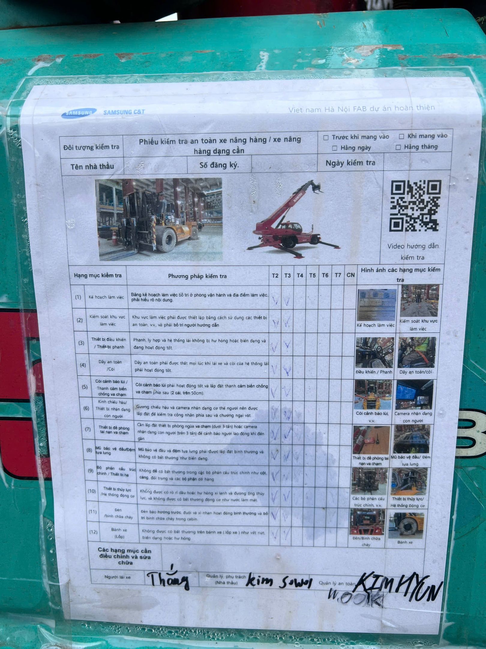 Trước khi cấp xe nâng vào dự án MC Industries cần chuẩn bị rất nhiều giấy tờ xe đạt yêu cầu mới có thể làm việc tại dự án.