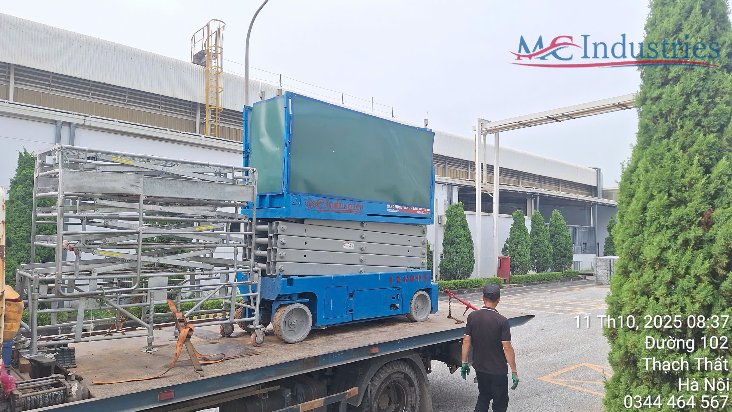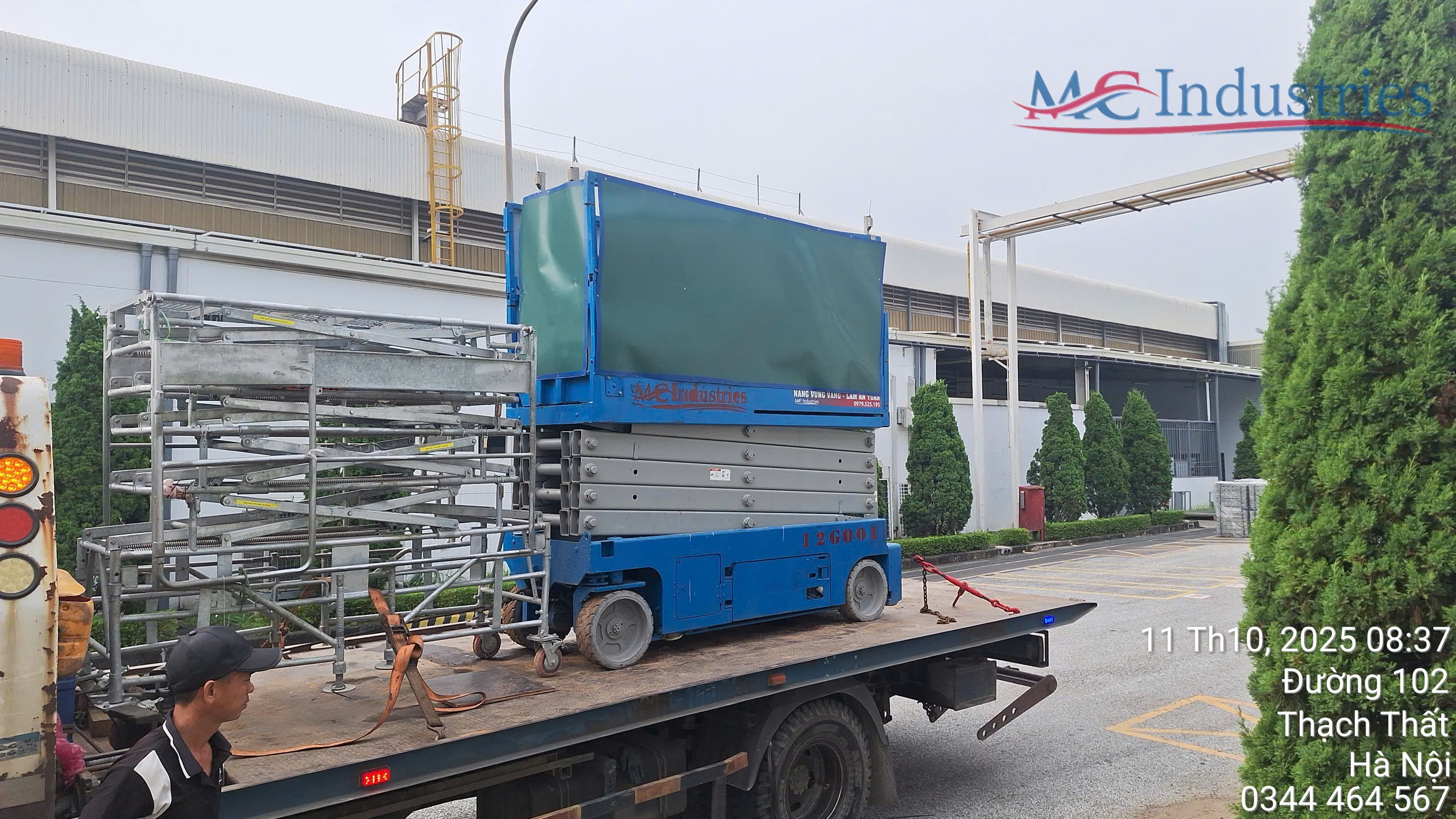 Ngày 11/10/2025 MC Industries bàn giao xe nâng người 12m cắt kéo thân hẹp và giàn giáo di động cho khách hàng Yamaha Motor Việt Nam tại KCN Thăng Long 1, Hà Nội.