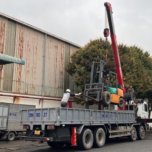 Đơn vị cần nâng hạ và tháo dỡ hàng hóa máy móc vào trong nhà máy. và lắp đặt vào vị trí cho khách hàng. Đơn vị chúng tôi sử dụng xe nâng hàng 5 tấn để tháo dỡ và di chuyển hàng hóa vào trong nhà máy cho khách hàng.