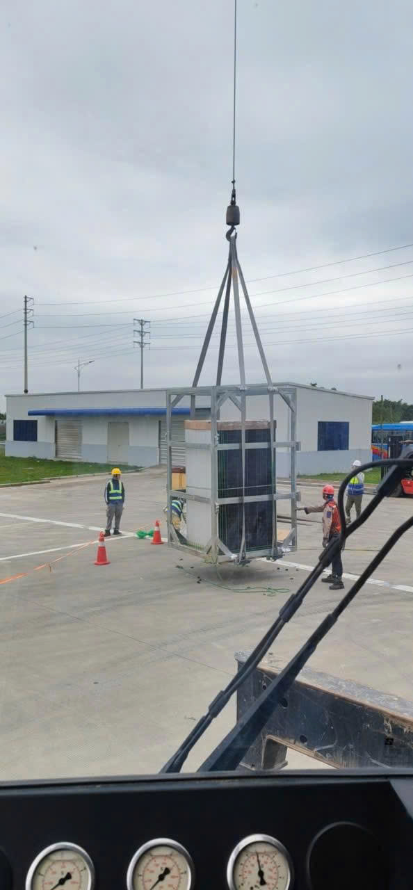 Vì những khối pin nặng và cần đưa lên trên cao để lắp đặt vì vậy khách hàng cần thường xuyên sử dụng xe cẩu để phục vụ nâng hạ khối pin từ dưới nền lên trên mái nhà. Khách hàng tin tưởng và thường xuyên sử dụng dịch vụ thuê các thiết bị máy móc bên MC Industries