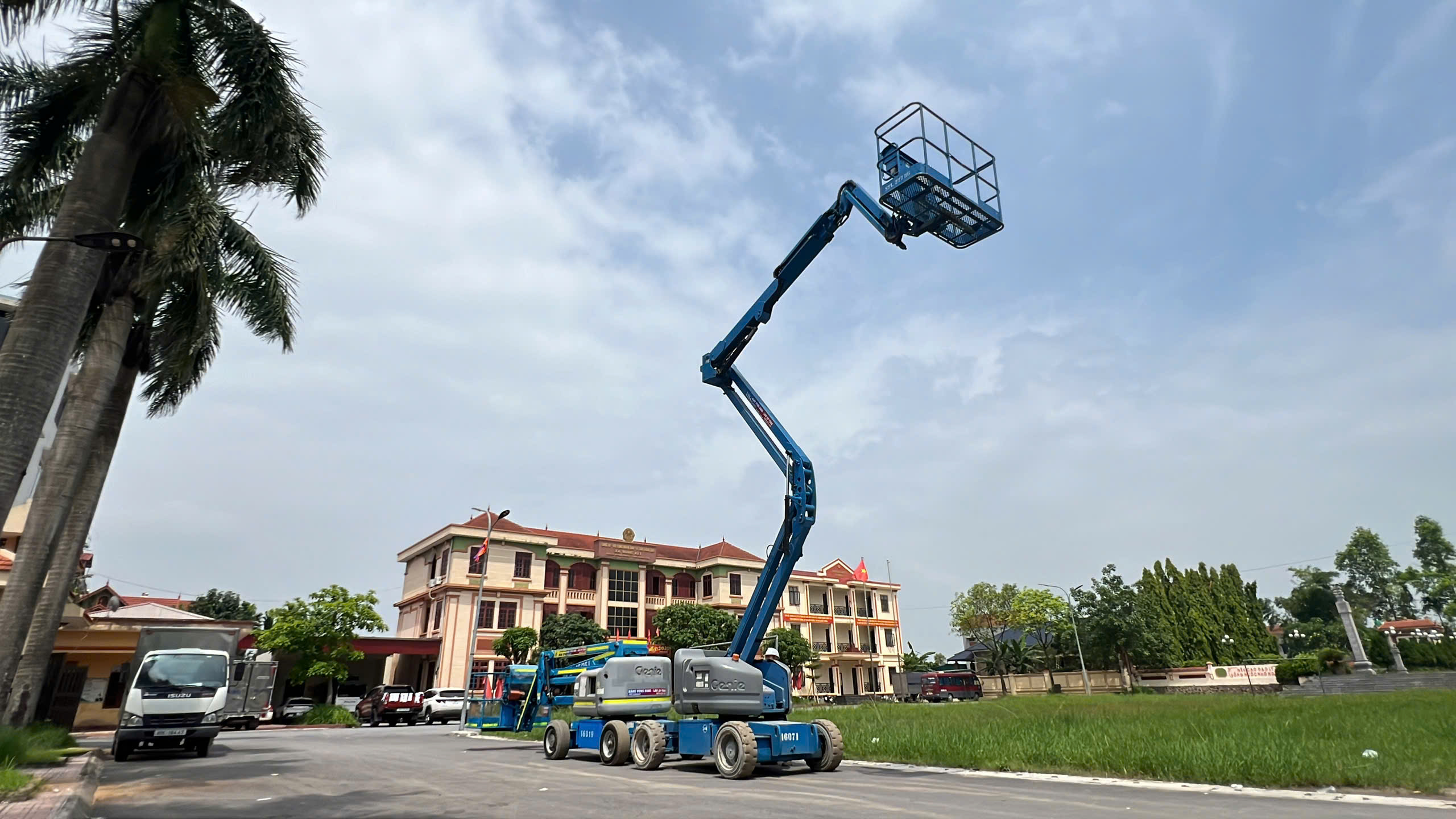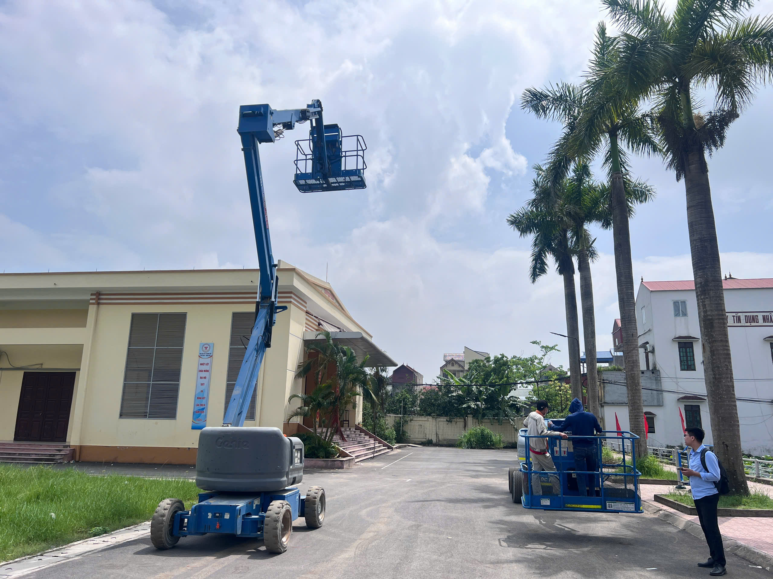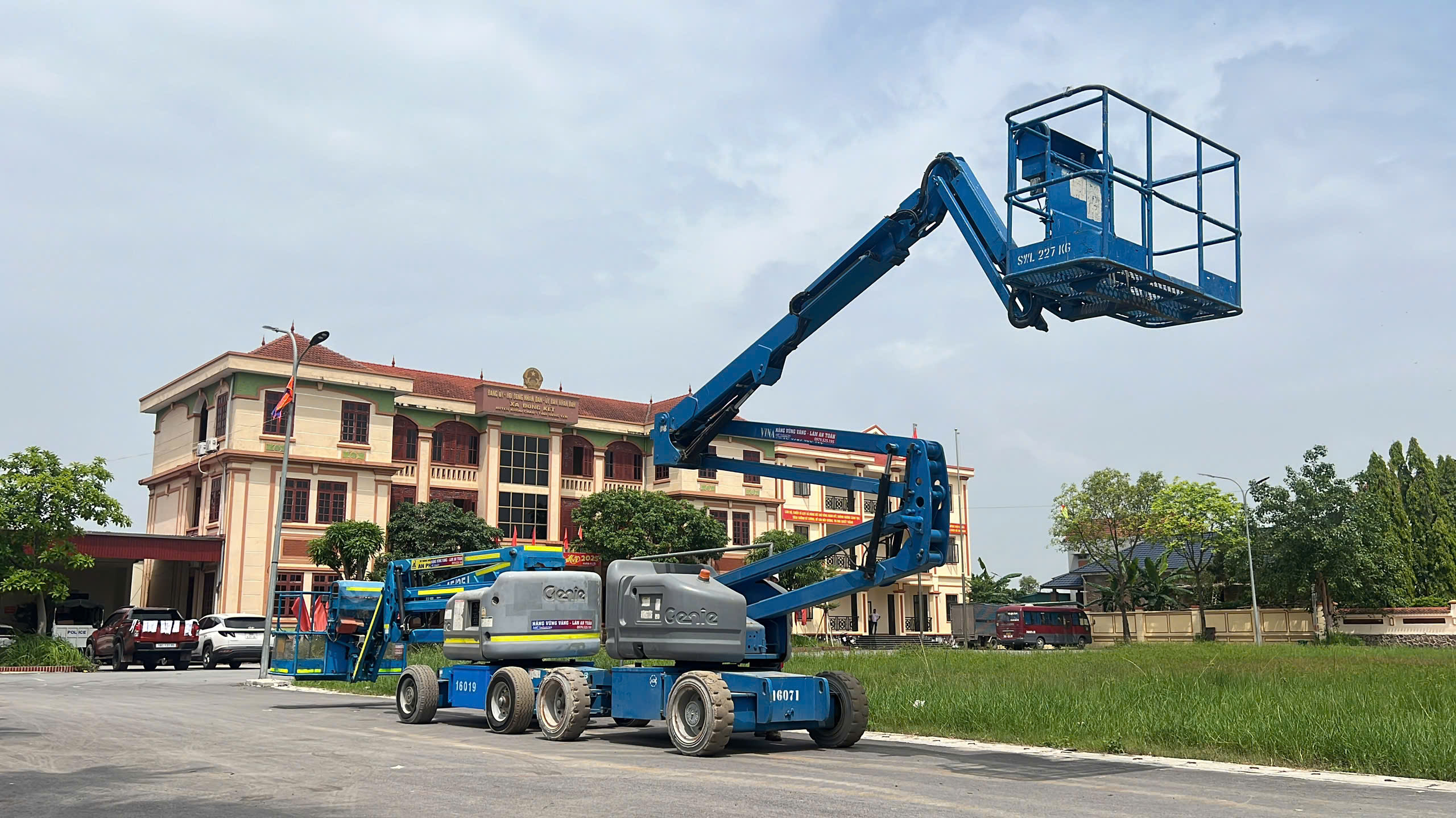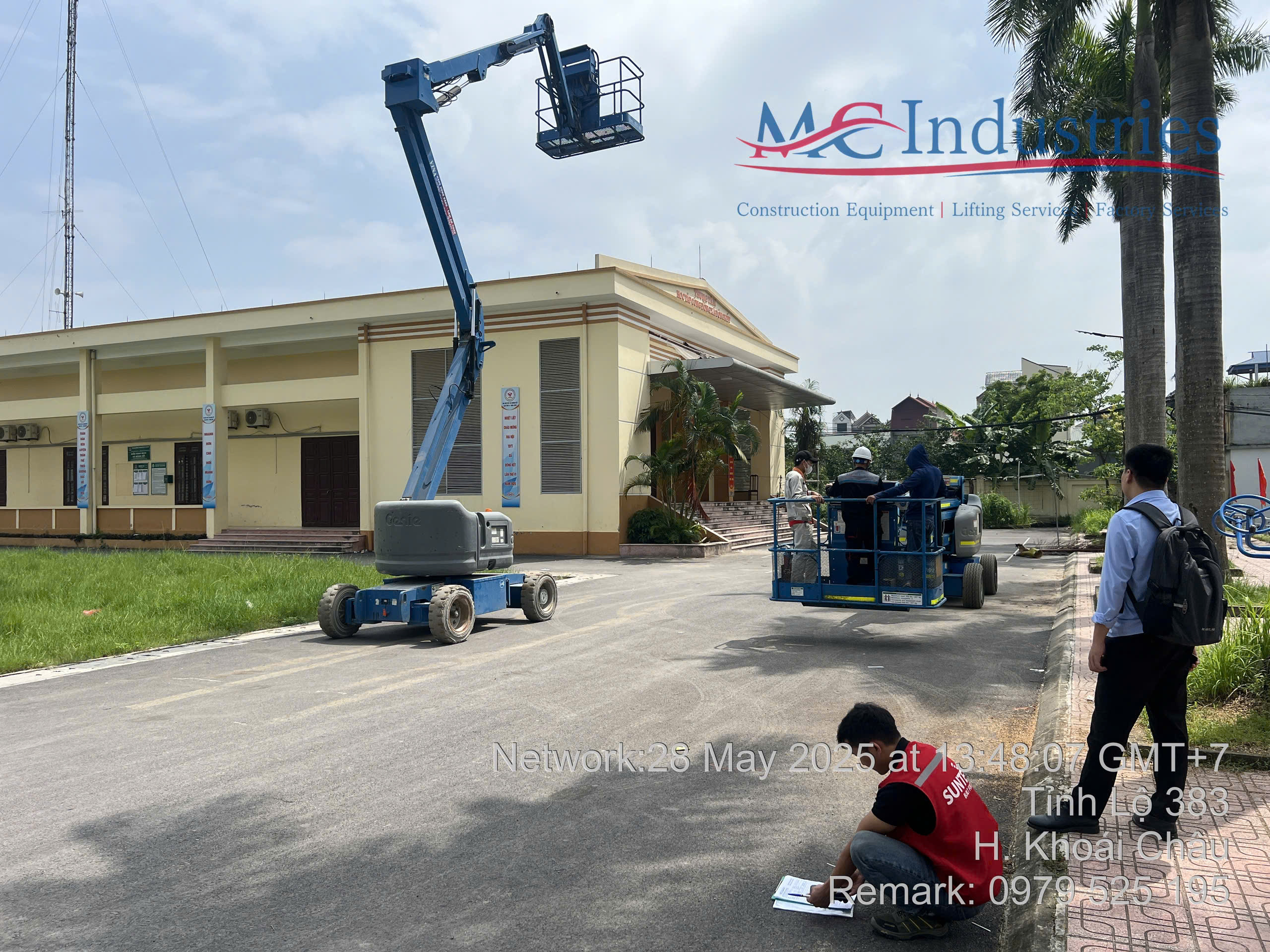 Ngày 28/3/2025 MC Industries bàn giao 2 xe nâng người boom lift phục vụ công tác sớn sửa toàn nhà hành chính tại Hưng Yên. Khách hàng là đơn vị chuyên cung cấp dịch vụ bảo trì, sửa chữa, sơn sửa lại các toàn nhà hiện nay. Vì vậy khách hàng cần sử dụng nhiều xe nâng người.