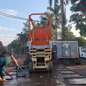 MC Industries bàn giao xe nâng người 8m cắt kéo phục vụ công ty Trí Đức Phát Hà Nam tại KCN Bình Lục, Hà Nam