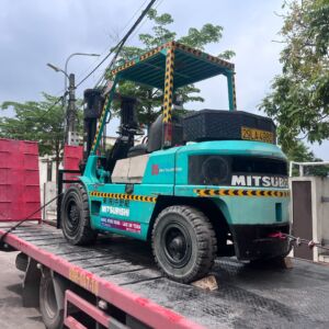Sau 2h đơn vị đã đưa xe nâng hàng xuống đến nhà máy và bắt tay thực hiện công việc nâng hạ cho khách hàng ngay không để khách hàng phải chờ lâu.