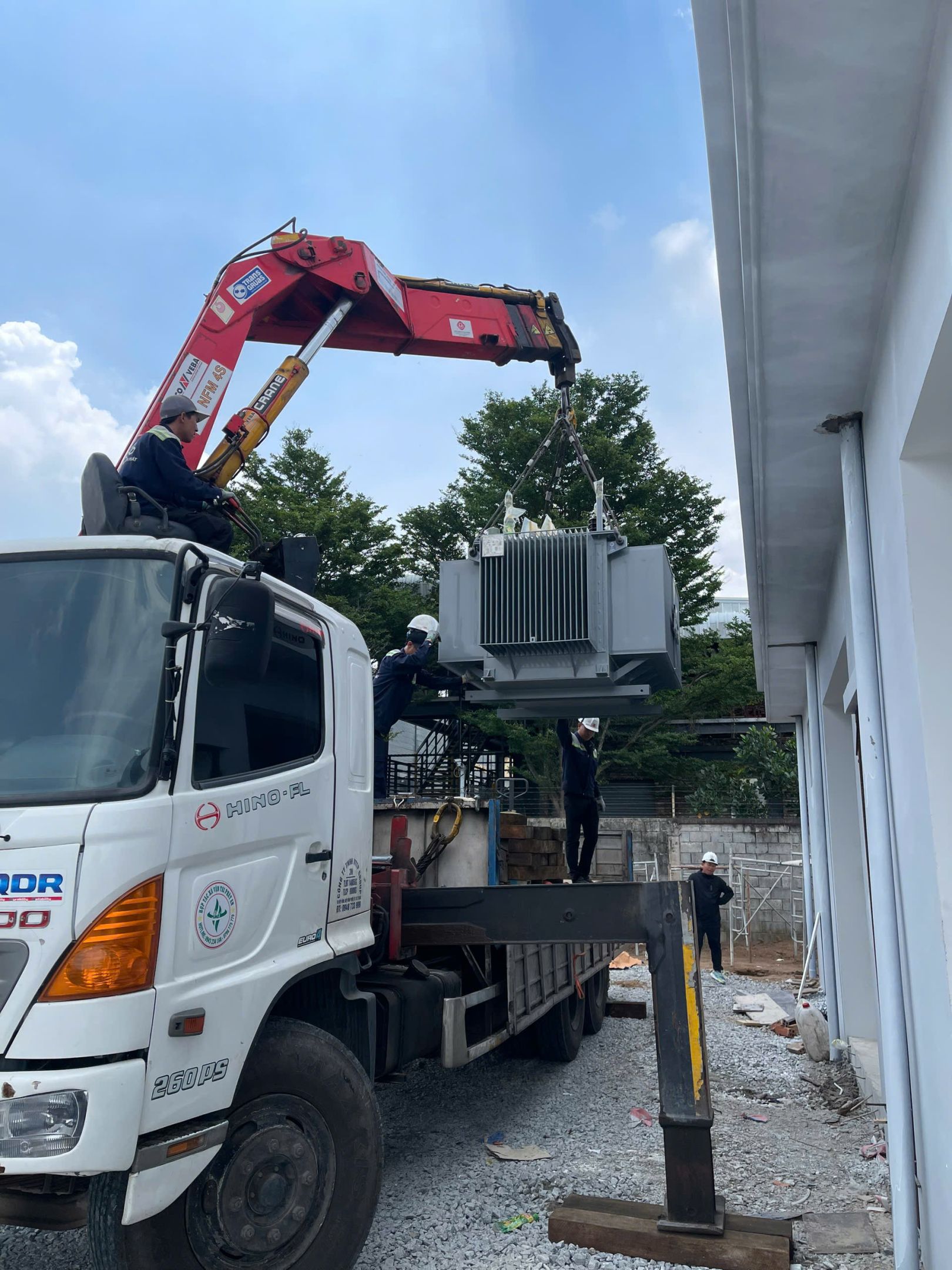 Với 1 cục máy biến áp cần được vận chuyển, hạ và lắp đặt trên mái nhà của nhà máy. Khách hàng đã liên hệ MC Industries để cung cấp dịch vụ này.