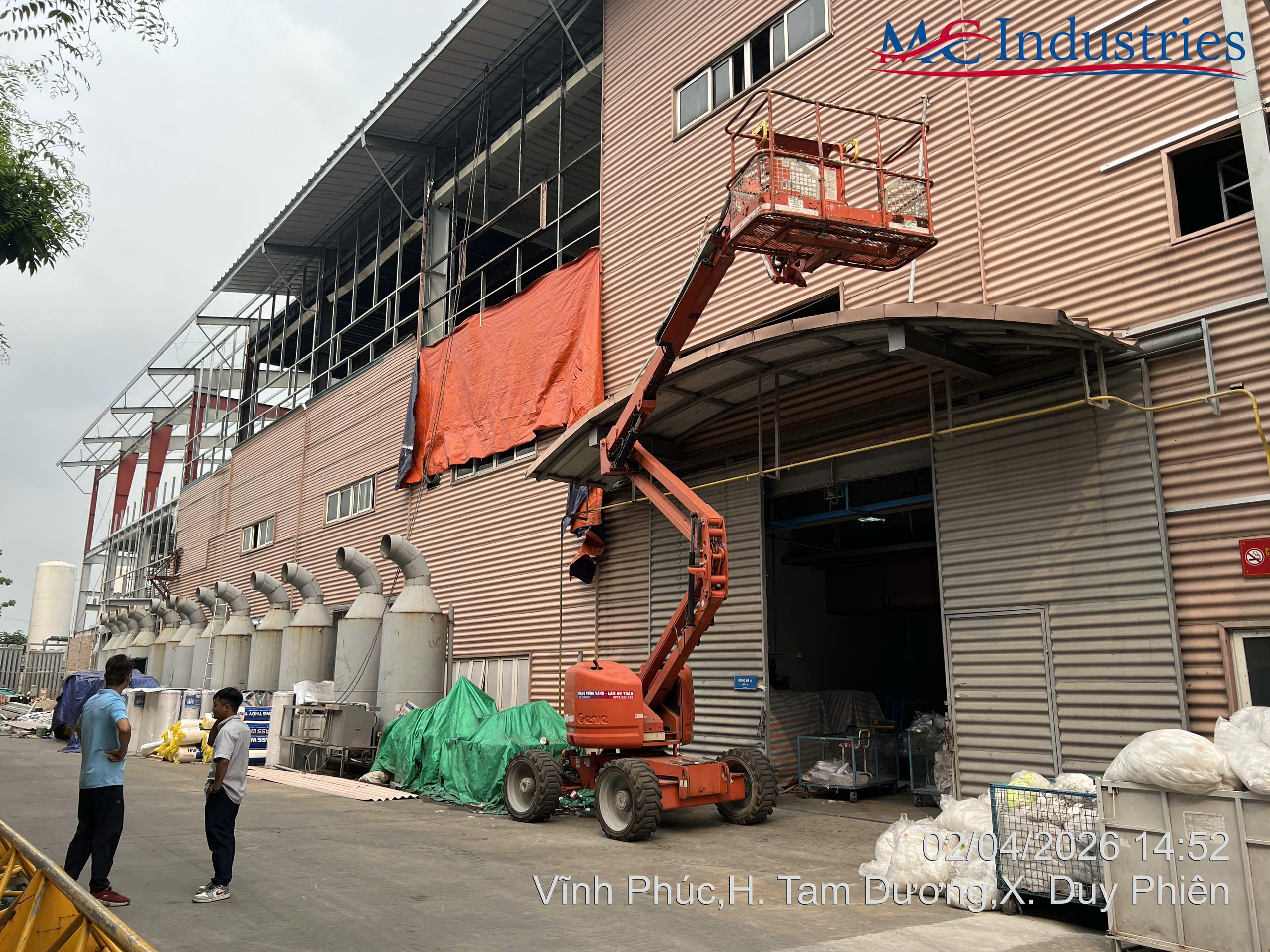 Ngỳ 2/4/2026 MC Industries đã bàn giao xe nâng người boom lift 16m dầu phục vụ bảo trì hệ thống vách, trần, hệ thống điện cho nhà thầu BMD thực hiện tại nhà máy chế biến hoa quả tại Phú Thọ.