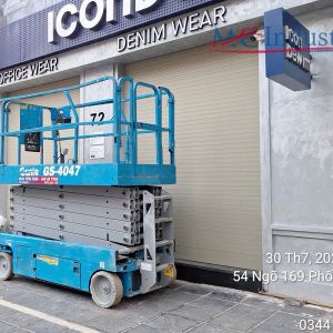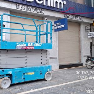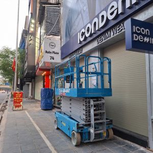 MC Industries bàn giao xe nâng người 14m cắt kéo điện phục vụ cửa hàng thời trang Icondenim