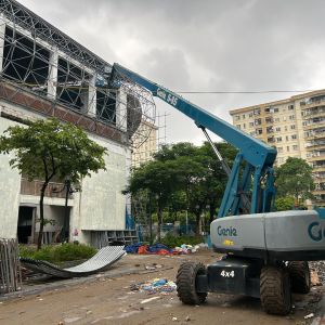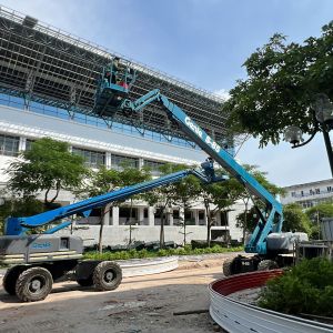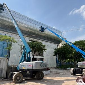 Ngày 8/9/2025 MC Industries tiếp tục bàn giao xe nâng người 28m boom lift S85 phục vụ lắp đặt hệ thống vách tôn, cửa sổ nhôm kính tại trung tâm thể thao.