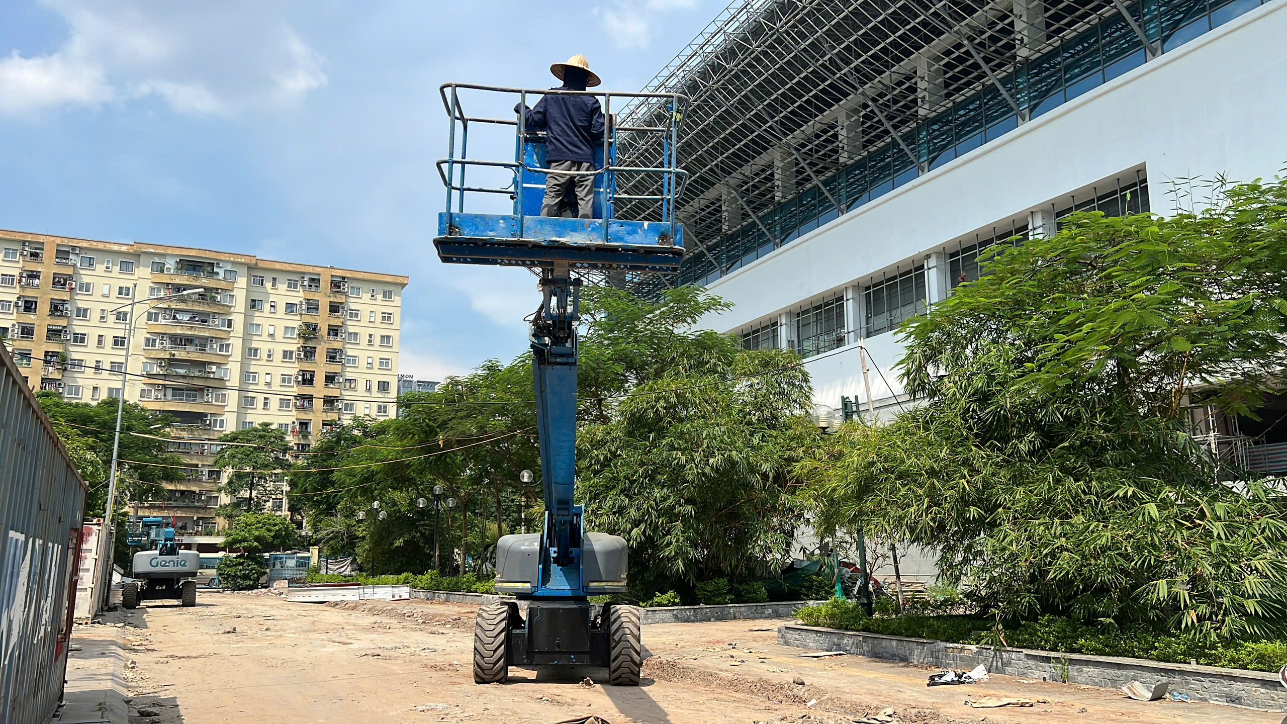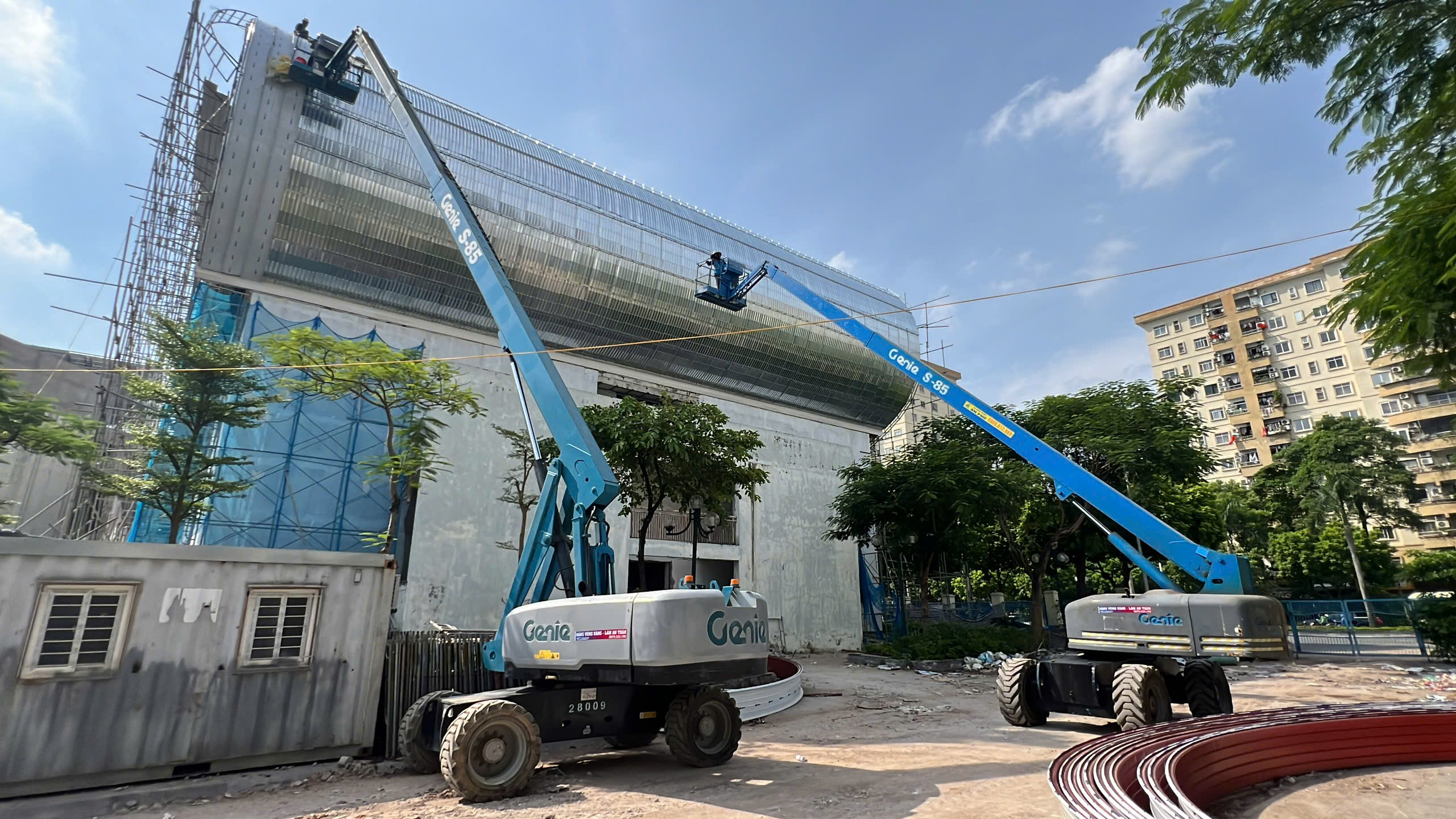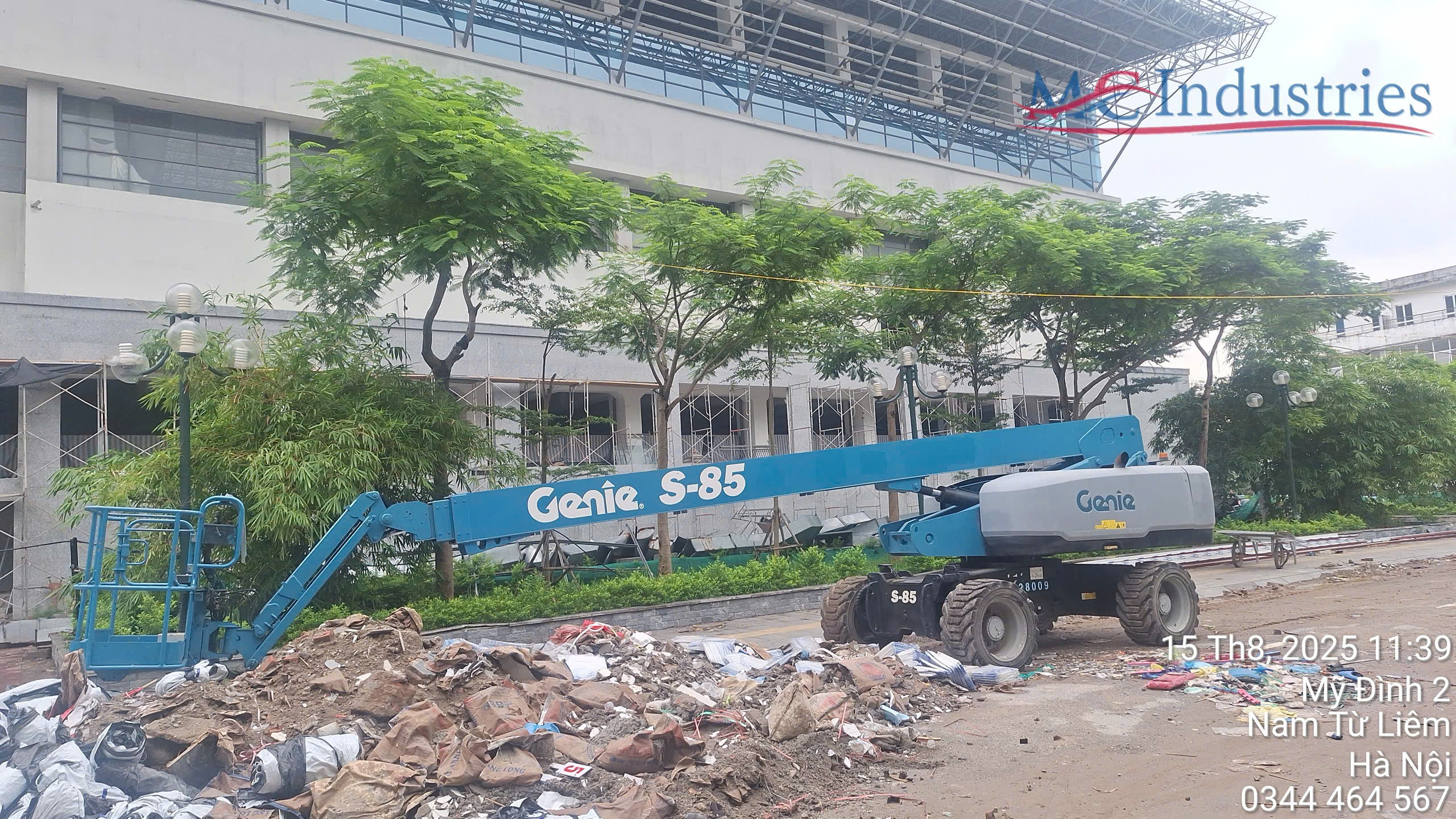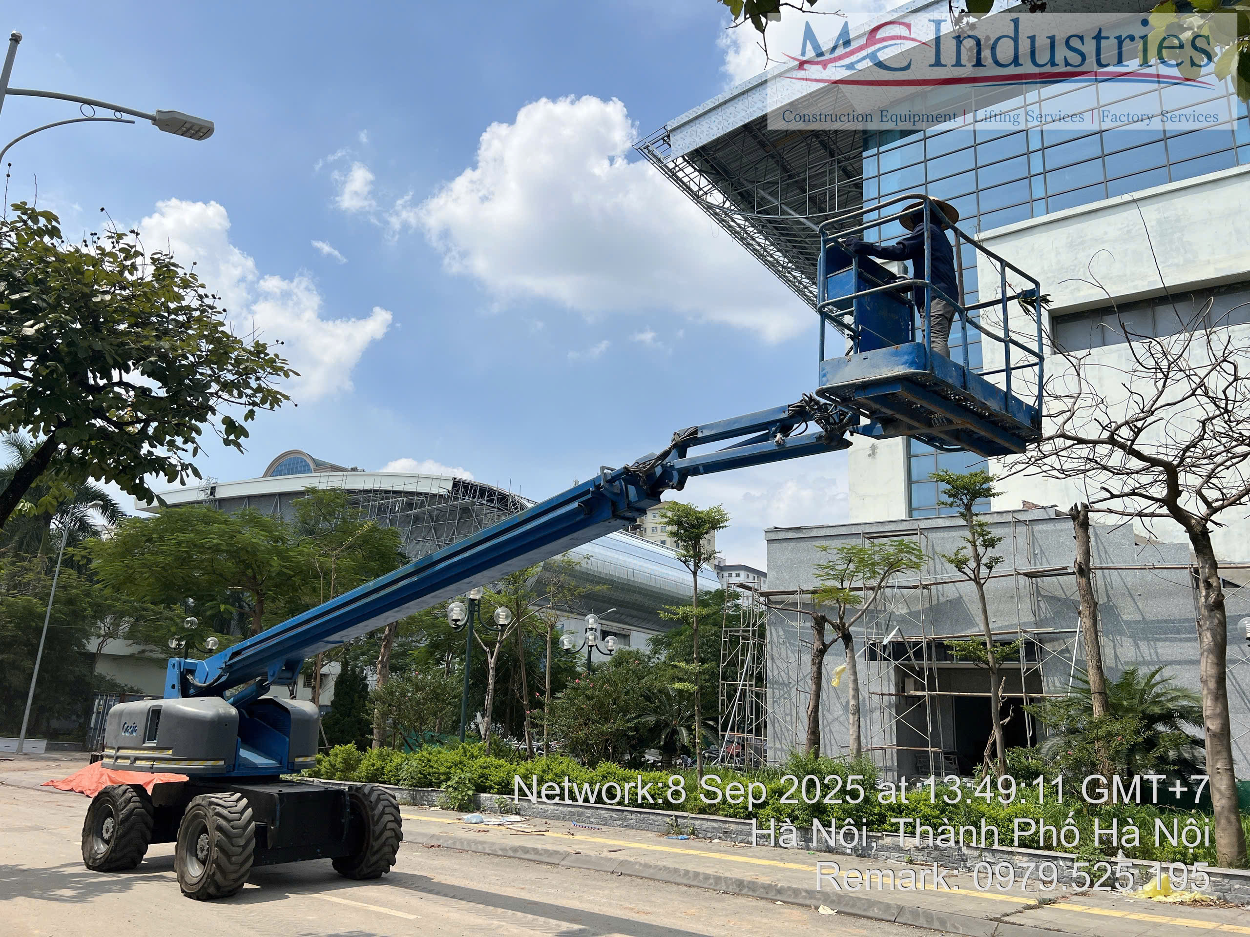 Ngày 8/9/2025 MC Industries tiếp tục bàn giao xe nâng người 28m boom lift S85 phục vụ lắp đặt hệ thống vách tôn, cửa sổ nhôm kính tại trung tâm thể thao.