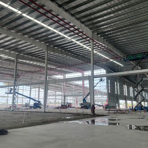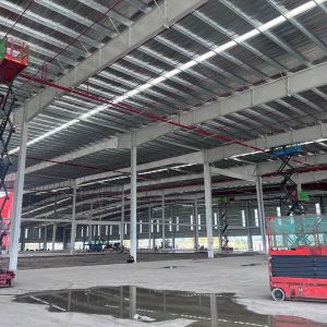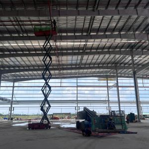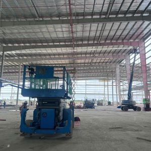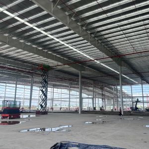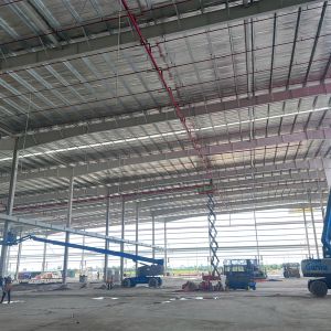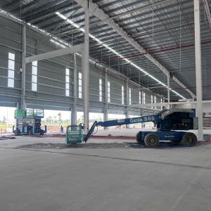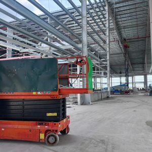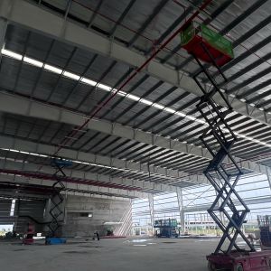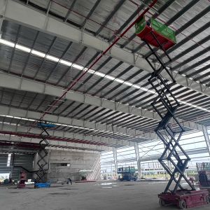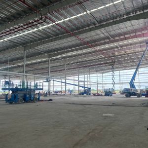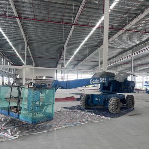 Nhà máy giao hàng nhanh GHN được khởi công xây dựng trên KCN Sạch số 3, Yên Mỹ, Hưng Yên với diện tích nhà xưởng rất lớn. vì vậy quá trình lắp đặt kết cấu, lắp đặt hệ thống cơ điện, hệ thống PCCC, hệ thống điện, hệ thống làm mát, …. cần sử dụng nhiều xe nâng người để phục vụ làm công việc trên cao.
