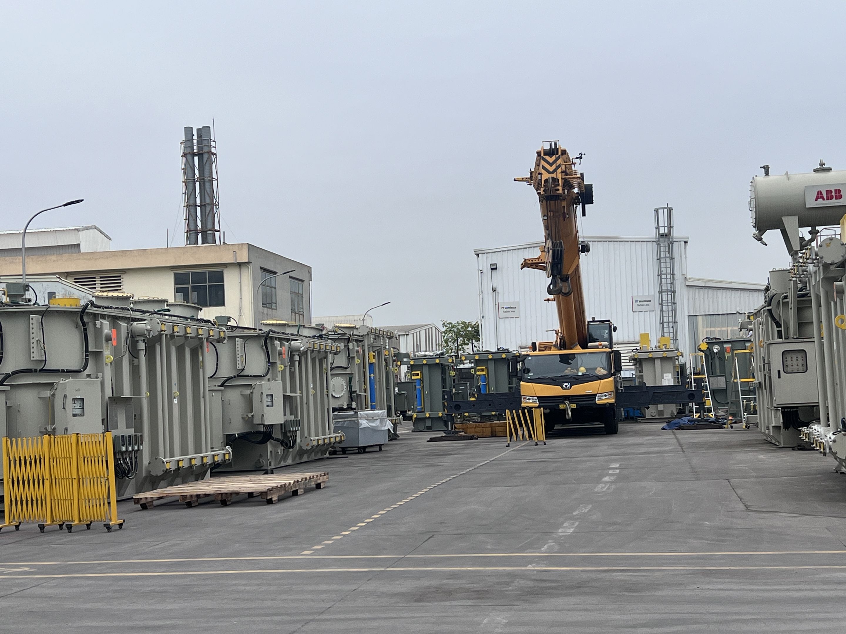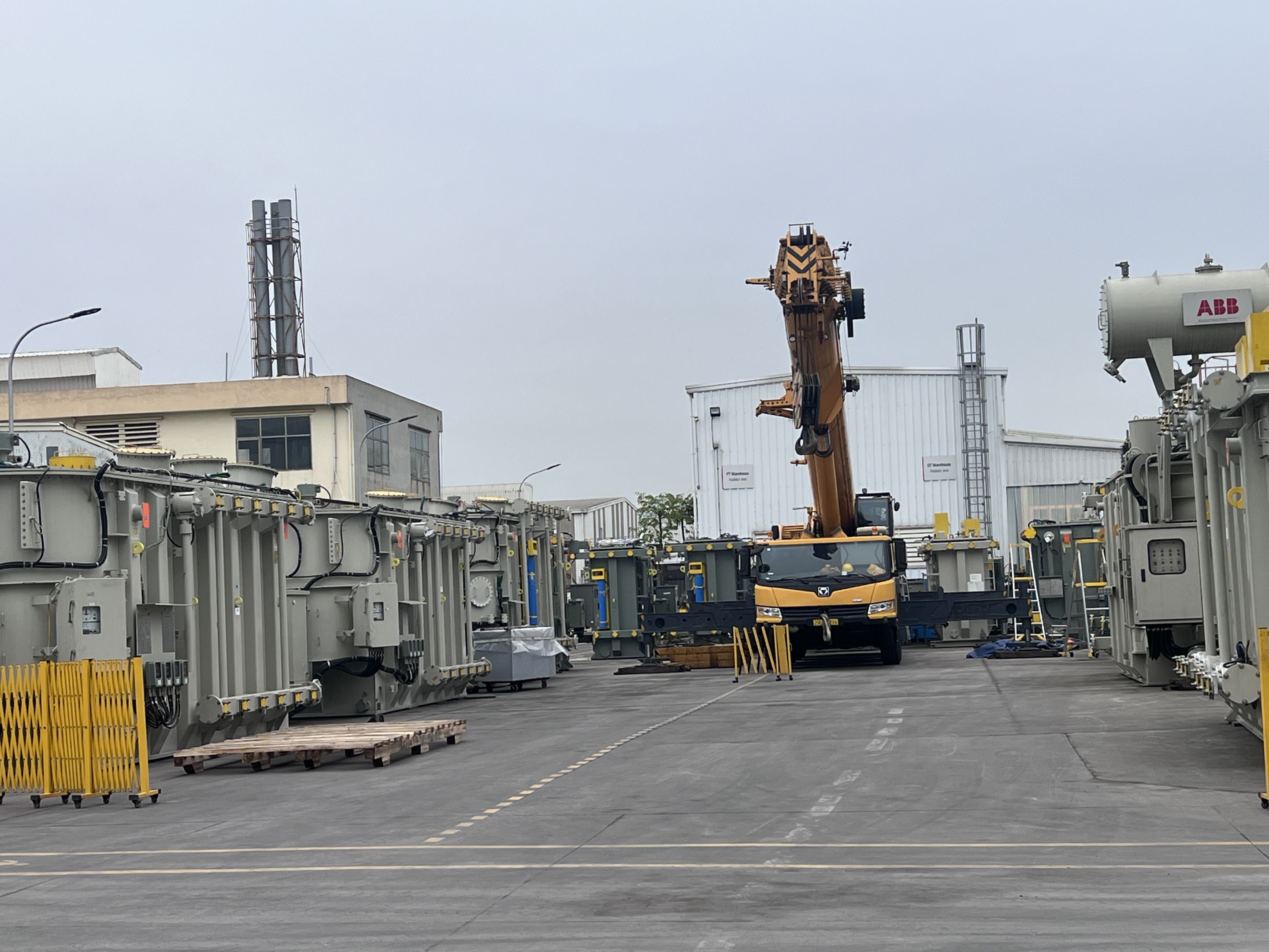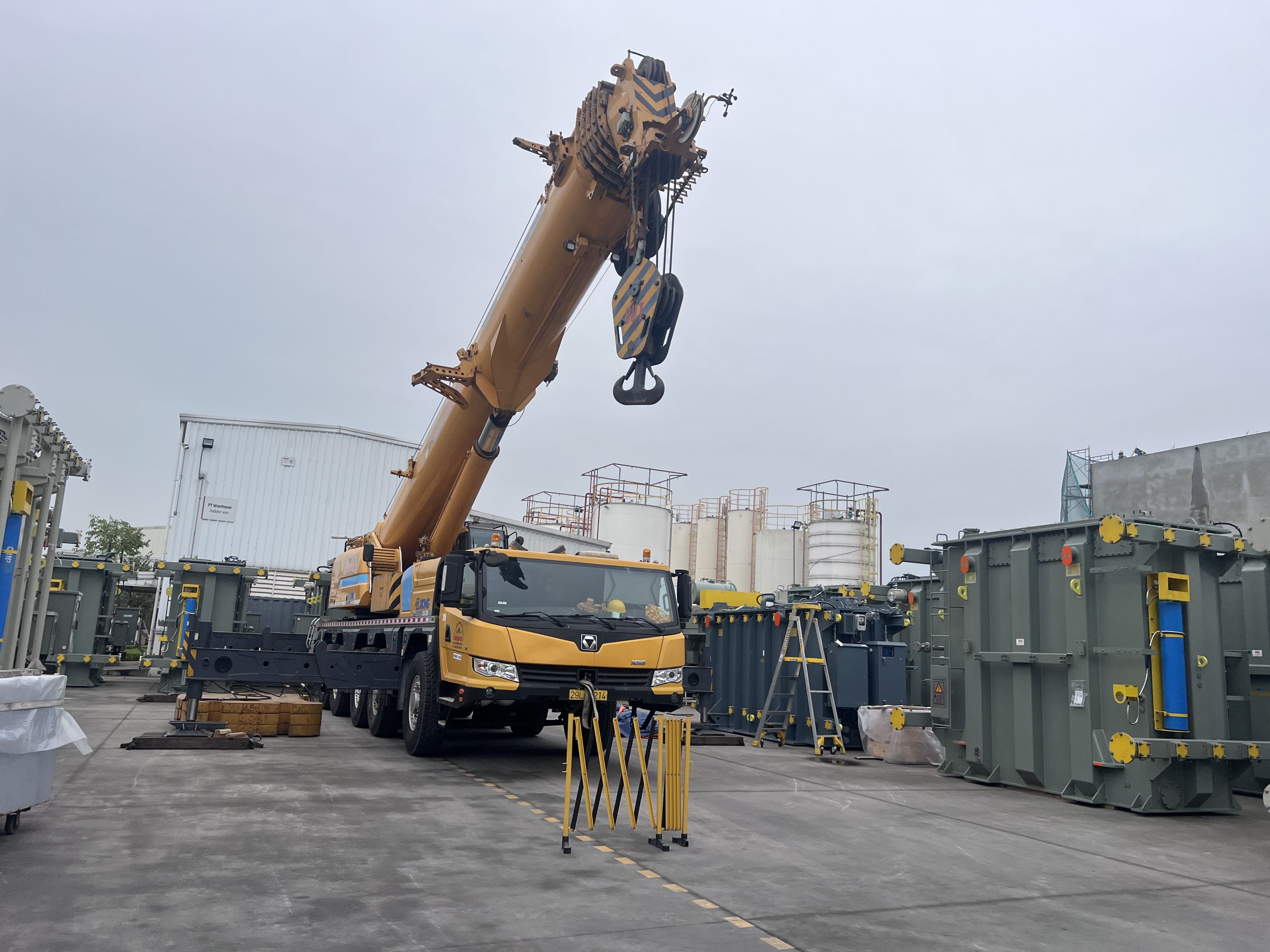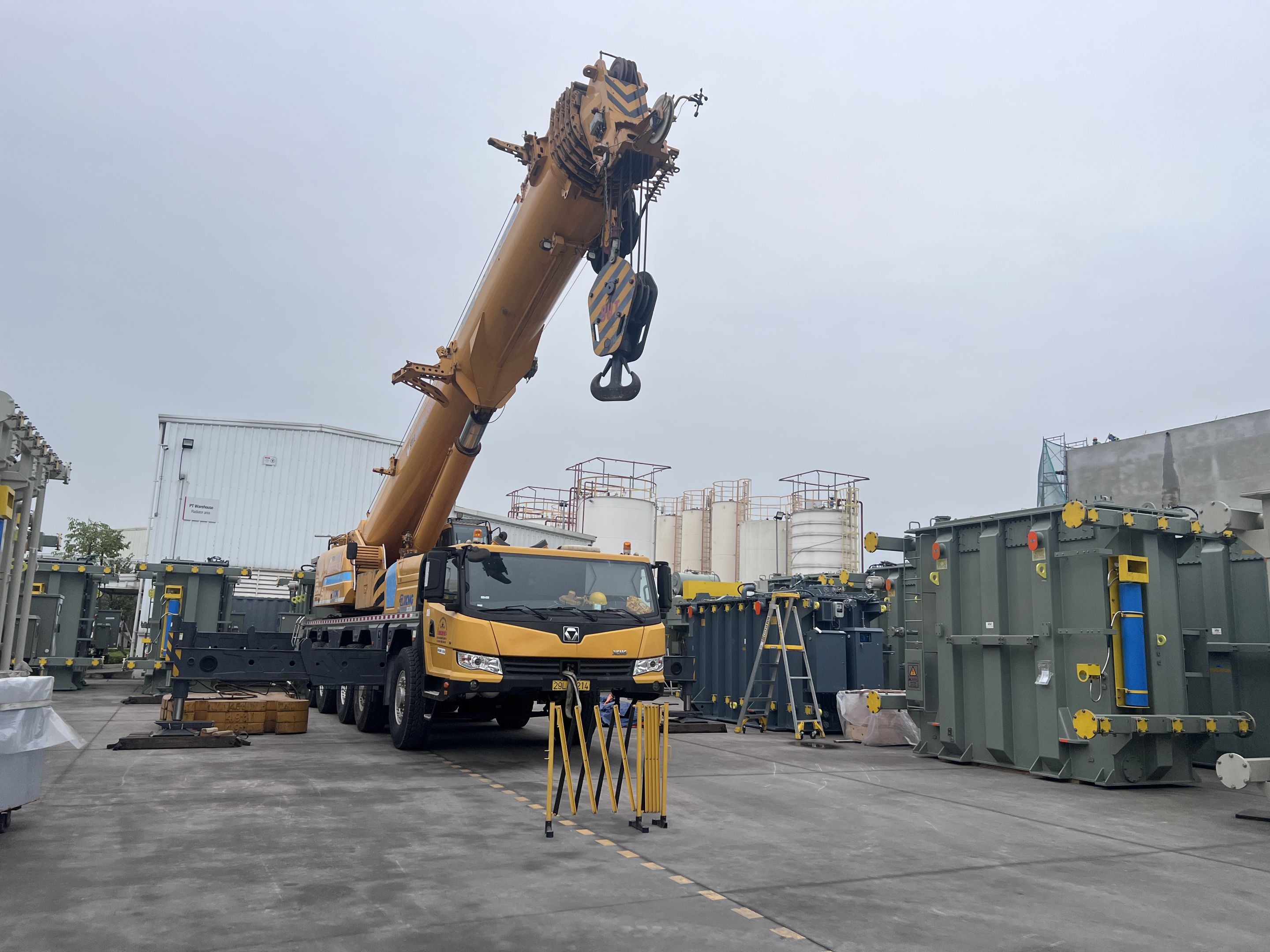 Ngày 29/3/2025 MC Industries cho thuê xe cẩu lốp 100 tấn phục vụ công tác nâng hạ và di chuyển máy biến áp vào trong nhà máy Hitachi.