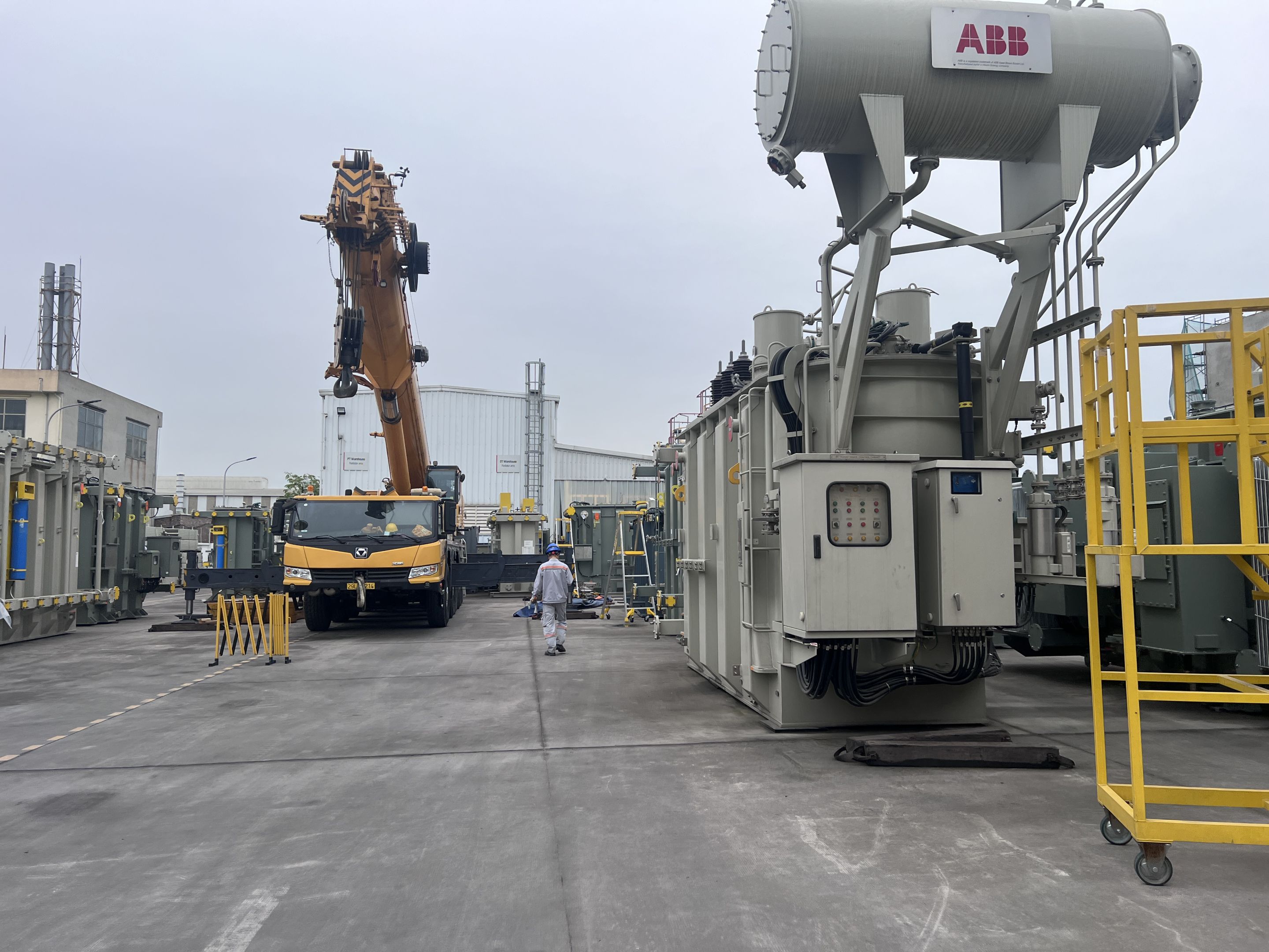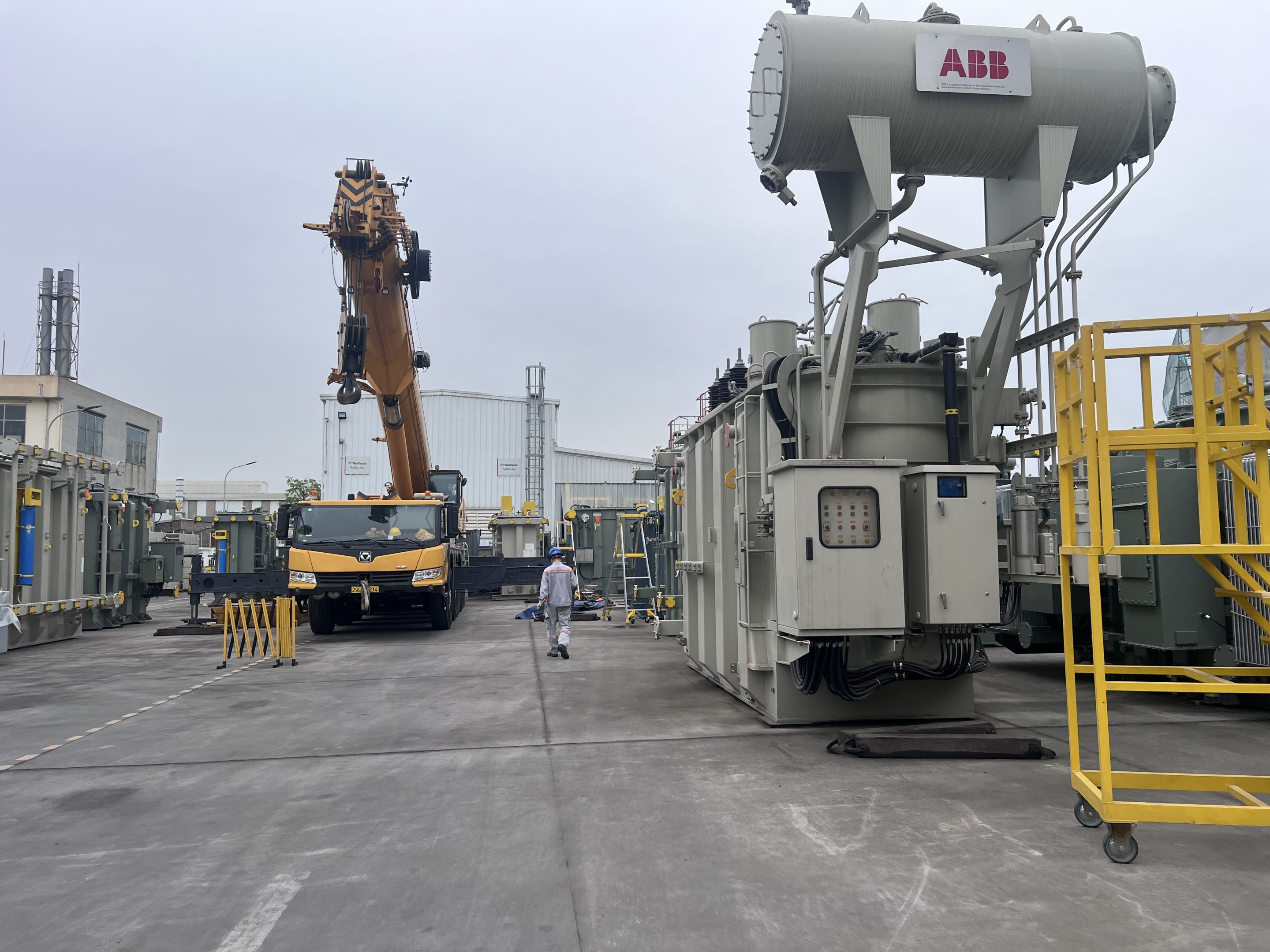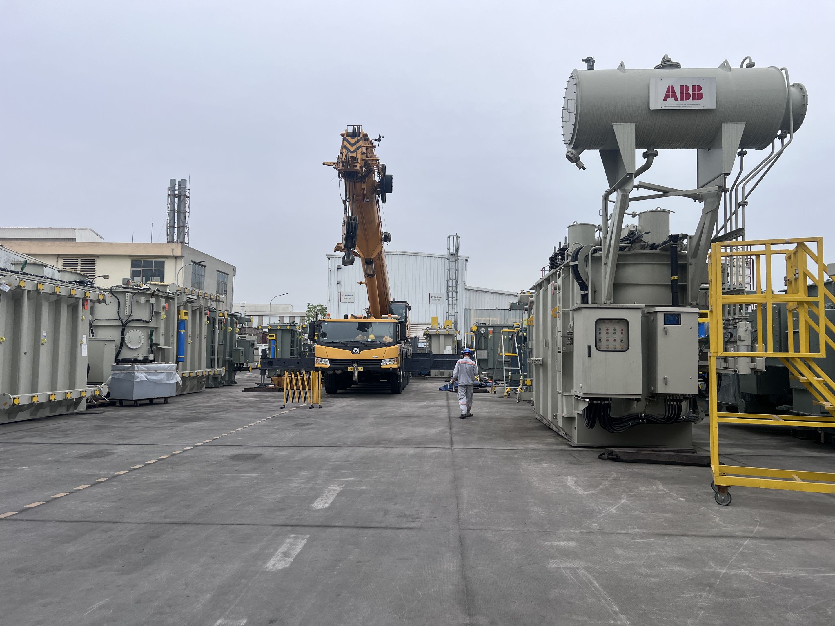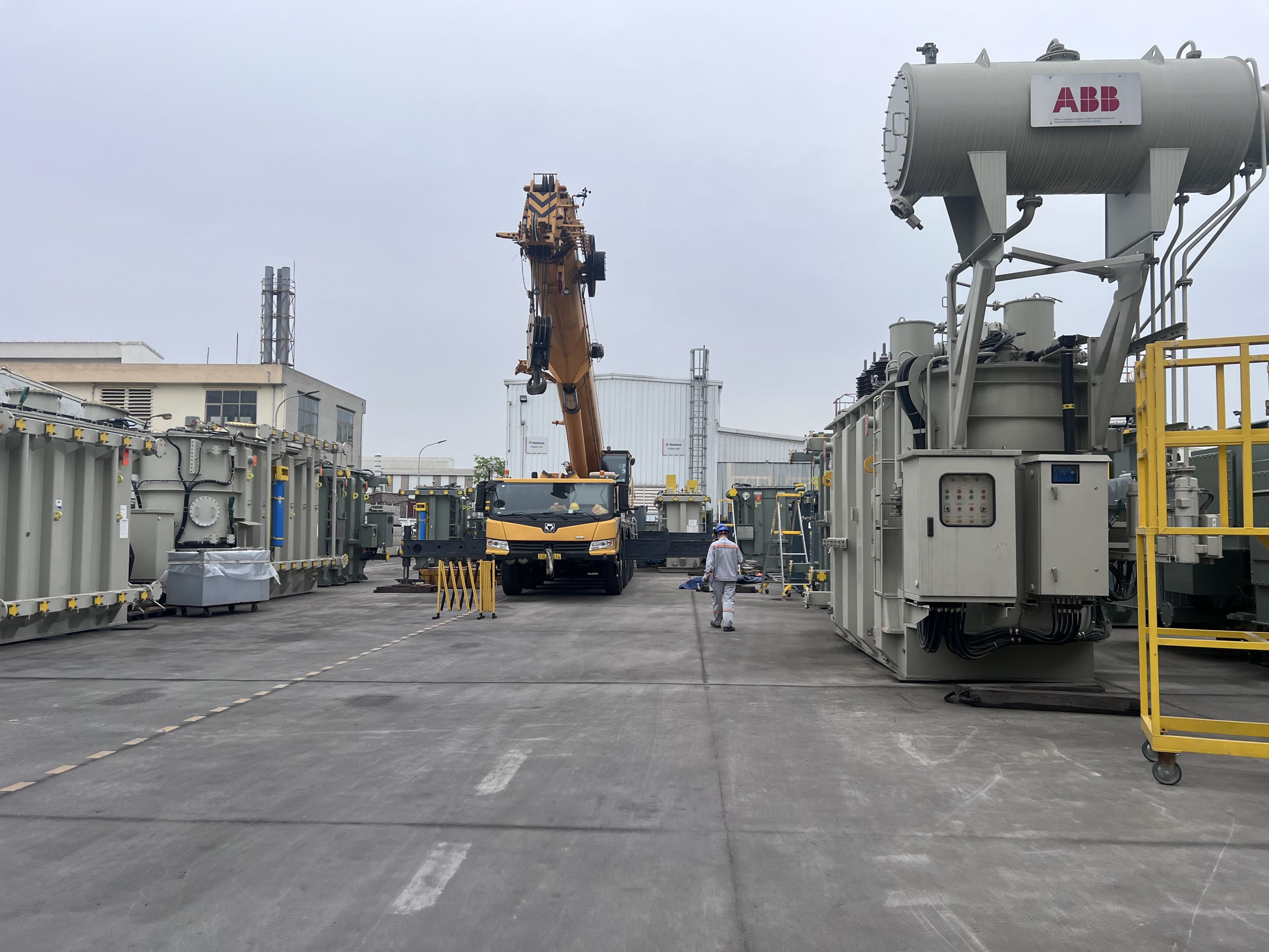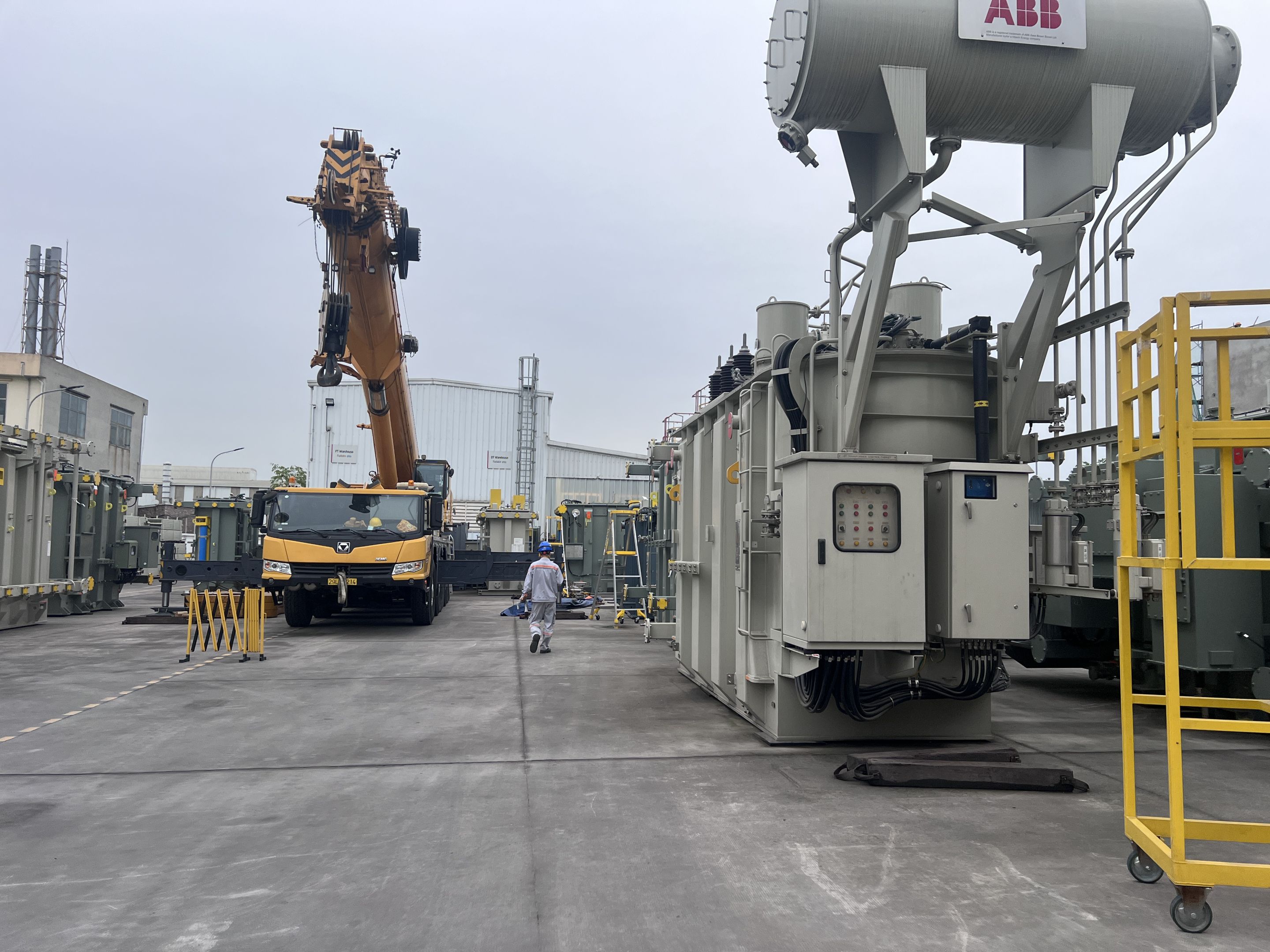 Ngày 29/3/2025 MC Industries cho thuê xe cẩu lốp 100 tấn phục vụ công tác nâng hạ và di chuyển máy biến áp vào trong nhà máy Hitachi.